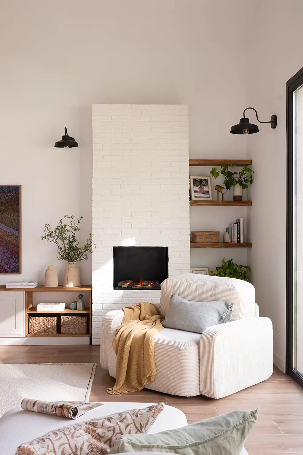 Dans chaque pièce, une petite décision qui a un impact : moins d’encombrement visible, plus de lumière là où c’est nécessaire, une plante pour apporter de la vie, des câbles qui disparaissent, plus de textiles naturels…