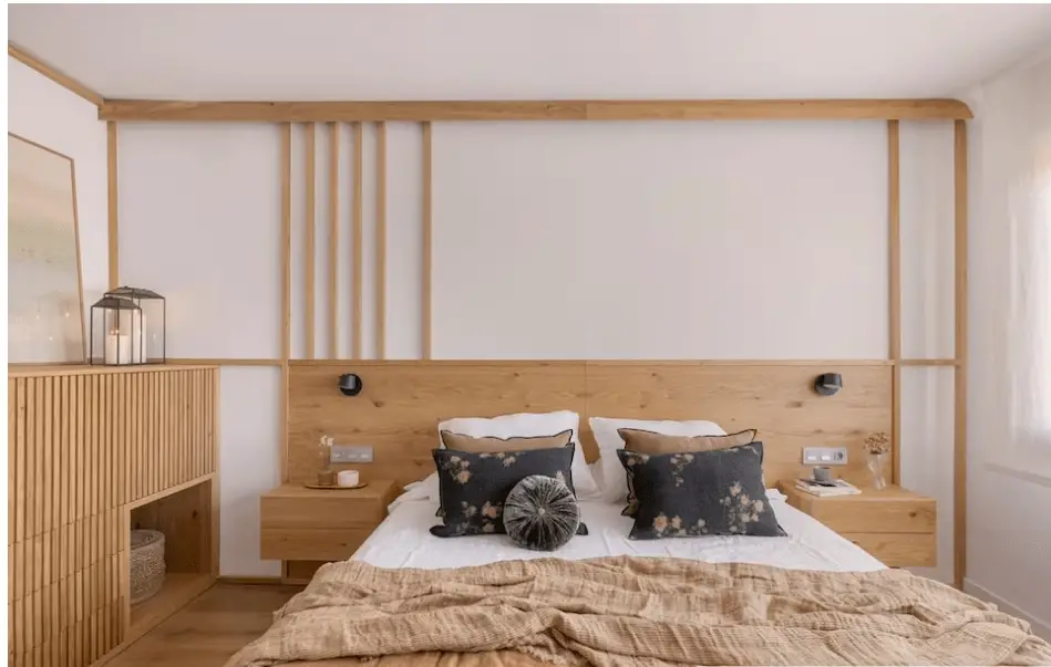 2.Chambre avec une tête de lit en lattes de bois