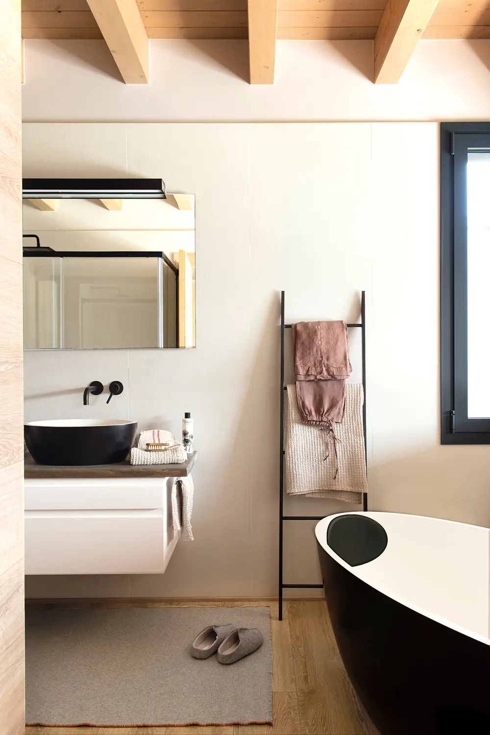 Salle de bain : ajouter une échelle à serviettes (ou un joli porte-serviettes)