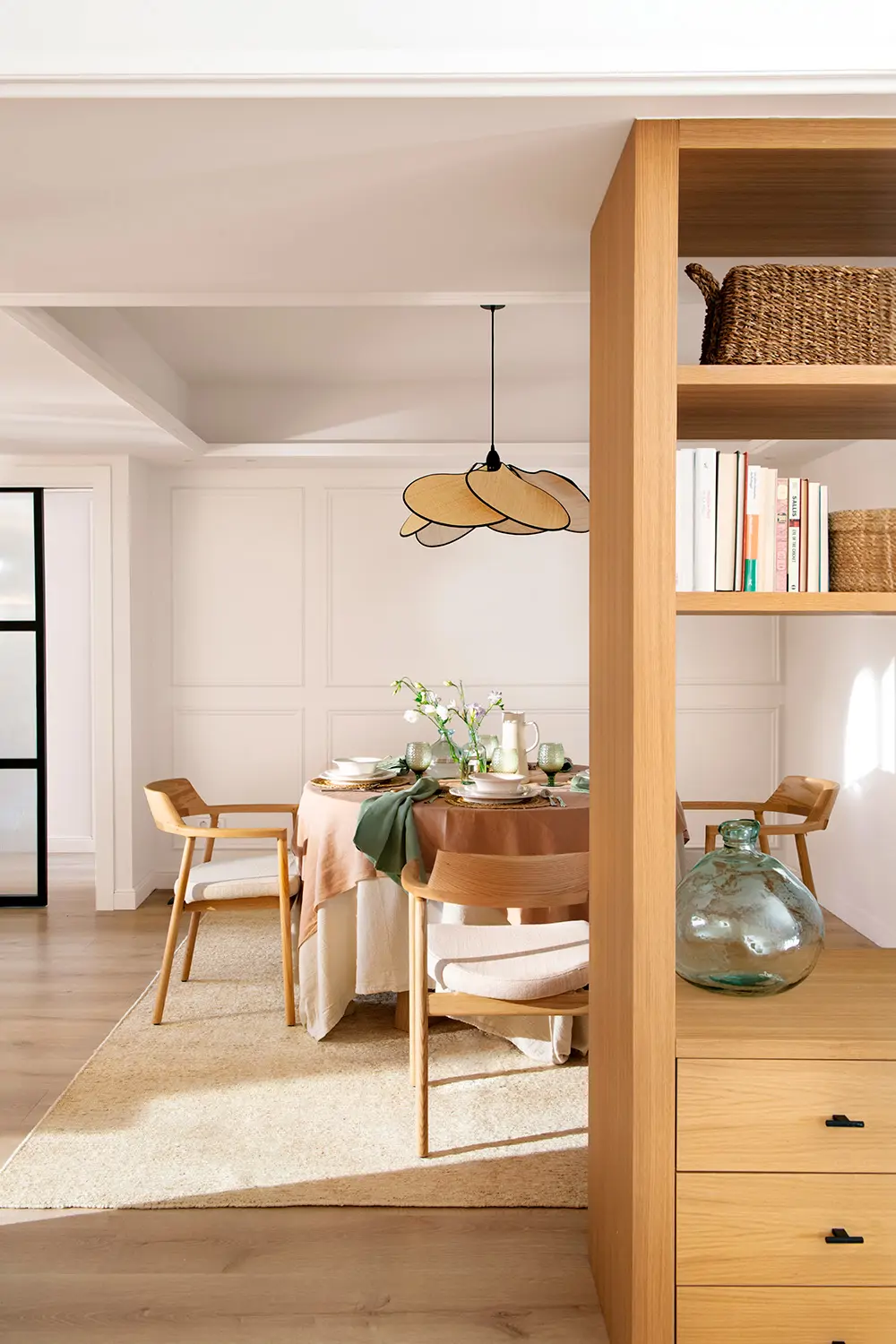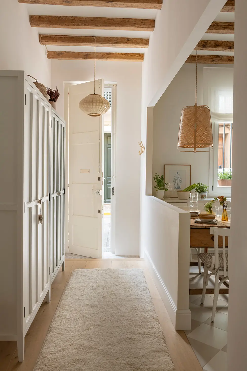 Parmi les changements les plus « économiques », Mairena cite les textiles et les couleurs : ajuster la hauteur des rideaux, installer des voilages légers sans bloquer la lumière naturelle, opter pour des rideaux doubles dans la chambre parentale et le salon, et choisir des tapis qui contribuent à structurer visuellement l’espace (dont un pour la table à manger). Pour elle, ces détails affinent l’ensemble et renforcent l’impression d’une maison finie .