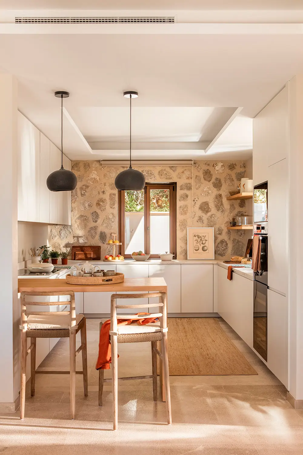 Dans la cuisine, l’un des changements pratiques que la décoratrice d’intérieur mettra en œuvre en 2026 consiste à suspendre certains meubles plutôt que de les laisser au sol , afin de gagner du rangement et de créer une impression d’espace.