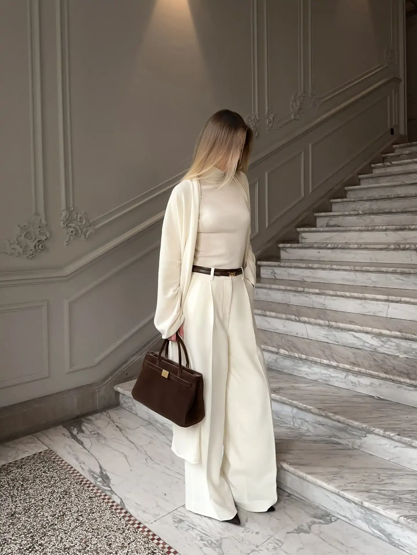 Associée à des accessoires aux tons clairs ou aux textures douces, elle dégage un professionnalisme certain tout en prouvant que les couleurs neutres peuvent être tout sauf ennuyeuses.