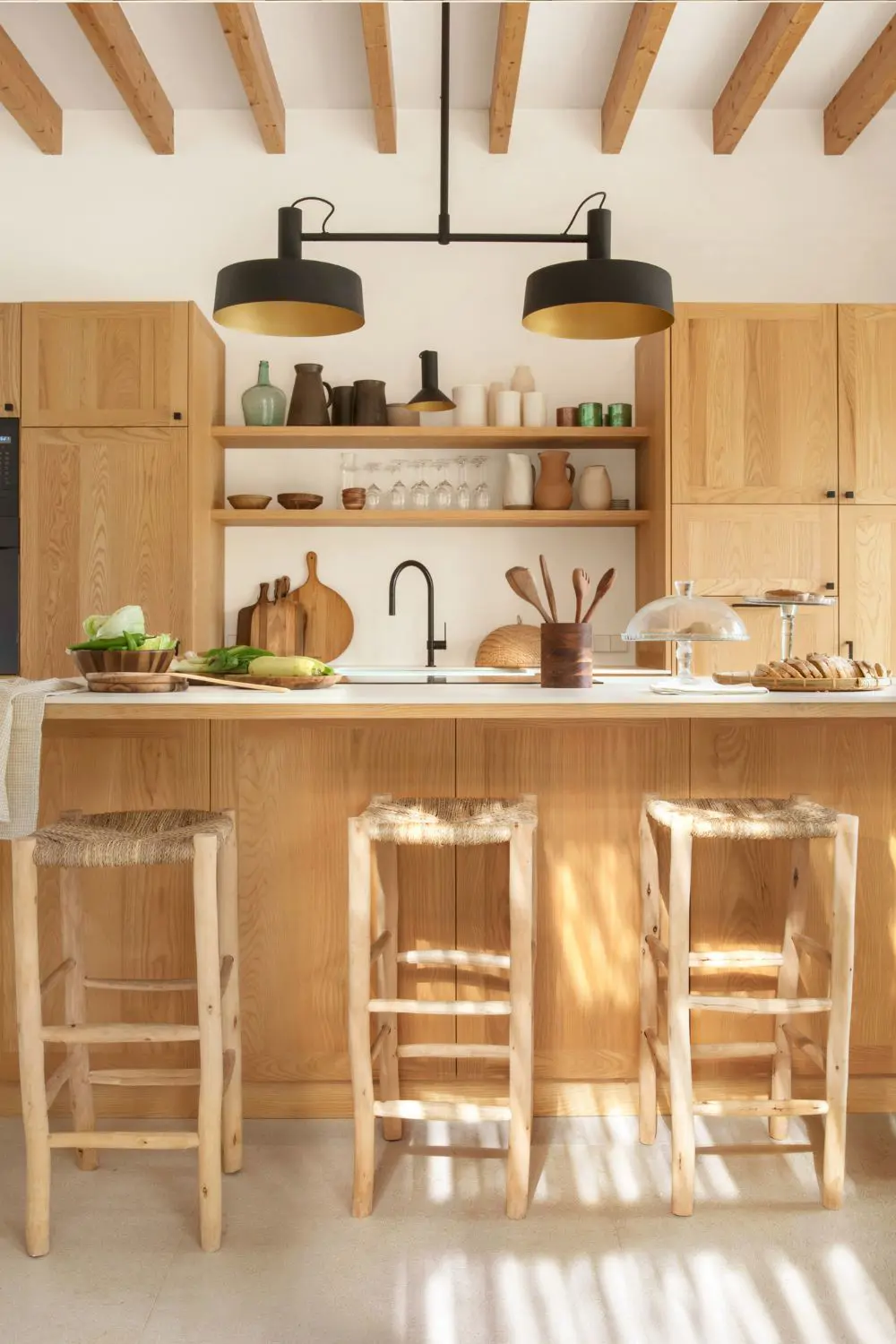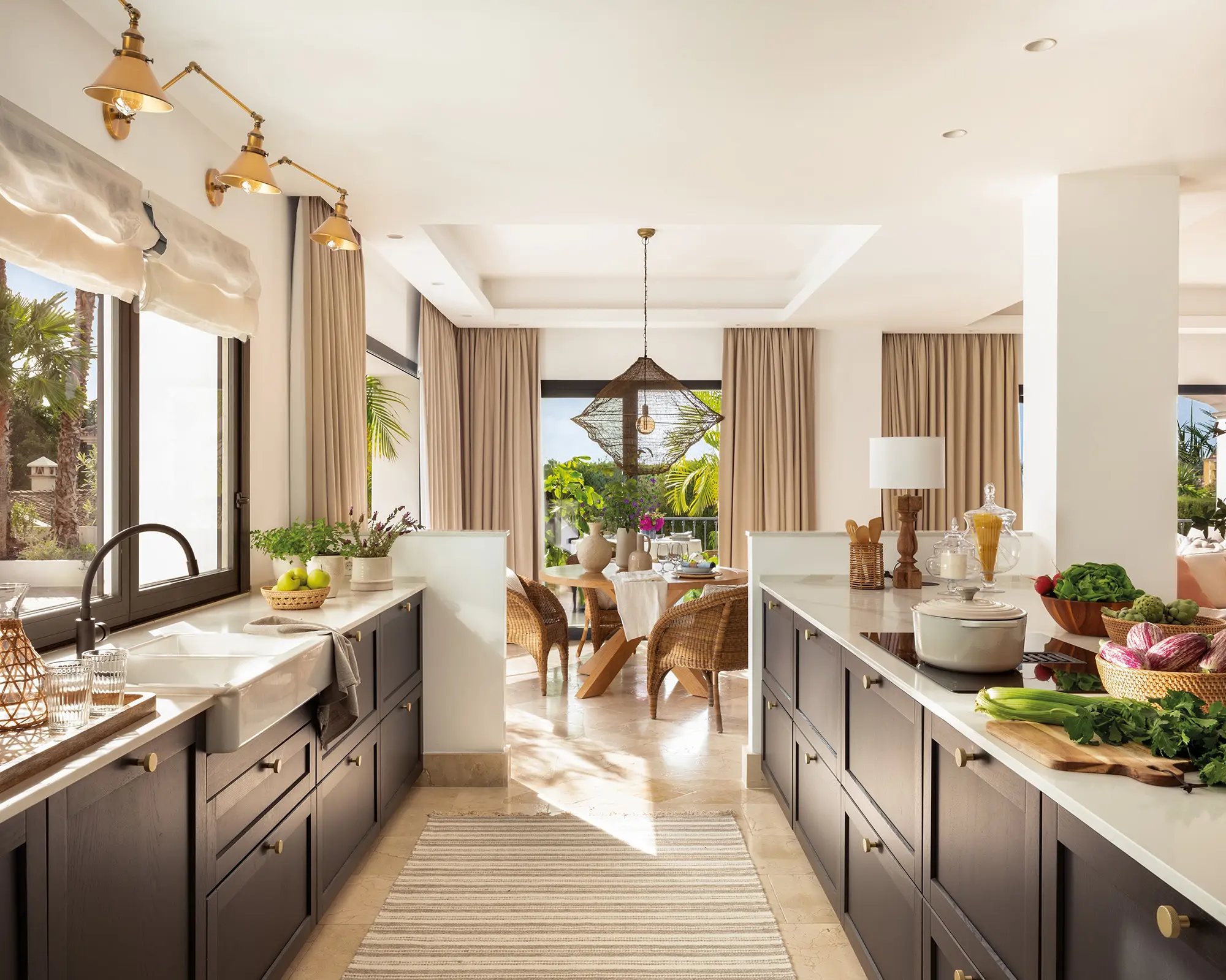 Bien que cela puisse paraître un détail, choisir les bonnes lampes est essentiel. Et cela vaut pour tous les luminaires de votre maison. Dans ce cas précis, celles que vous choisirez apporteront du style, créeront un contraste et, en même temps, illumineront l’îlot et la cuisine.