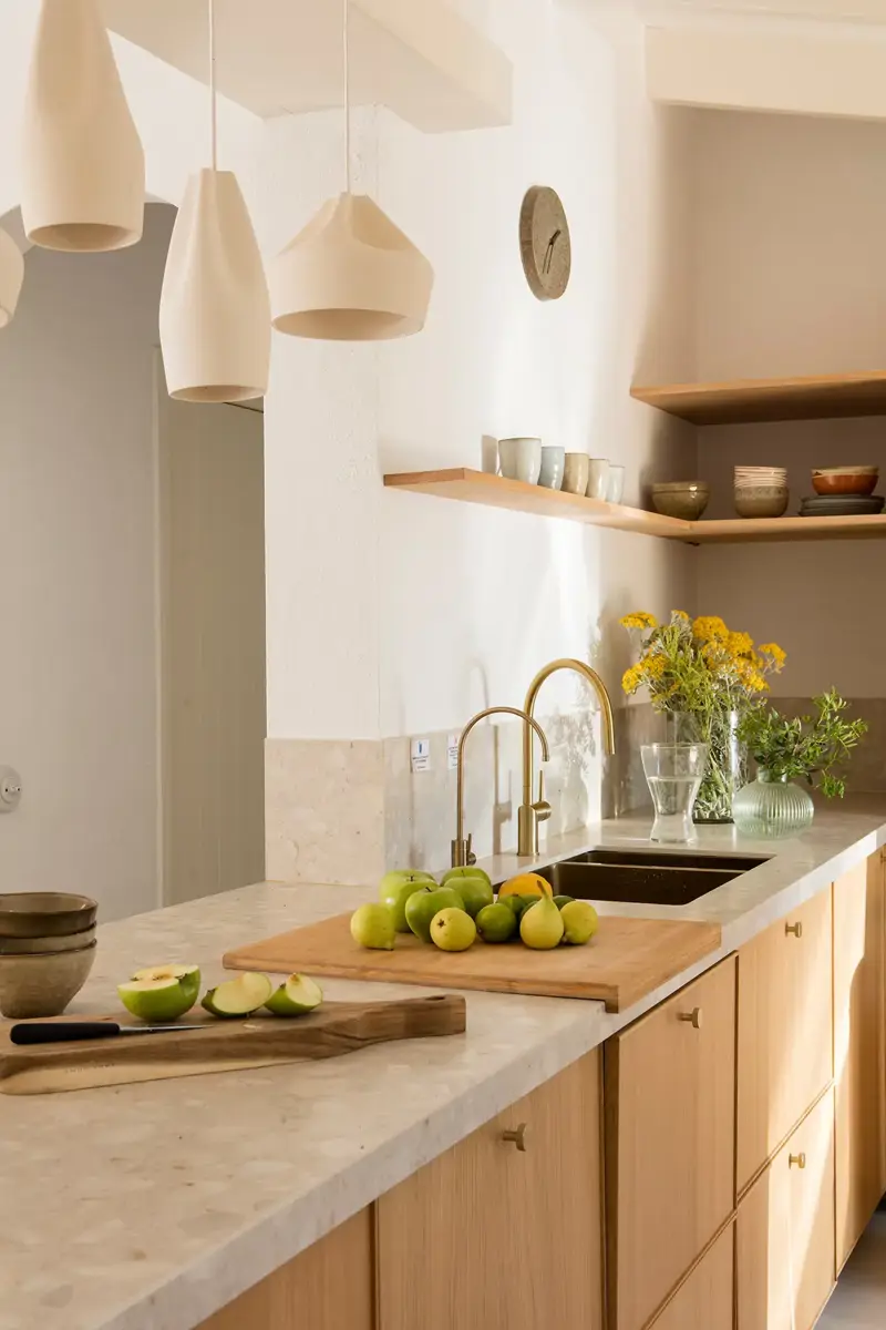 Les suspensions conserveront leur fonction de séparation d’espace, mais leur aspect plus léger permettra de ne pas obstruer la vue et préservera l’élégance et la simplicité de la cuisine.