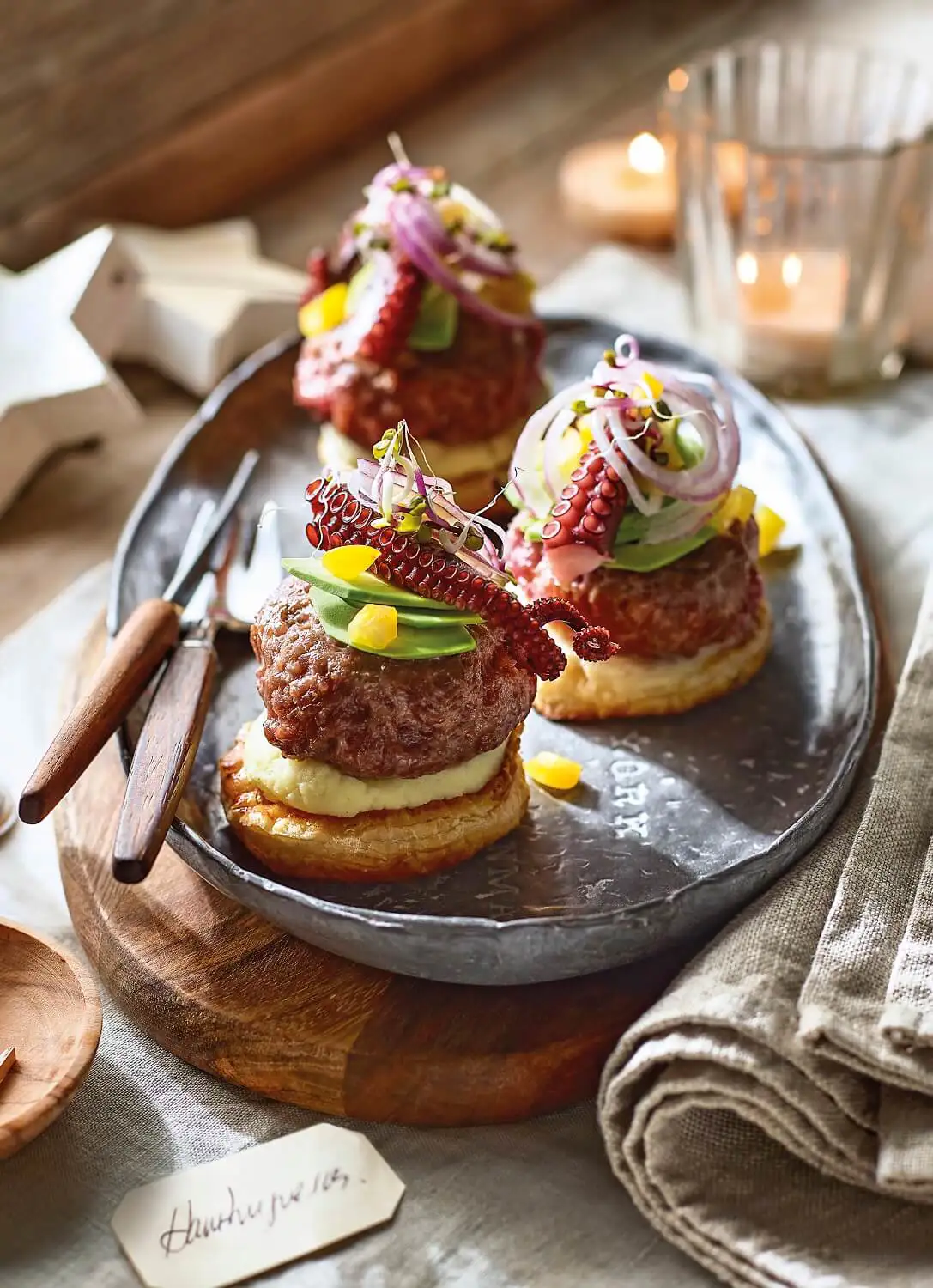 8.Recettes de Noël à base de pâte feuilletée : Burger feuilleté au bœuf et au poulpe