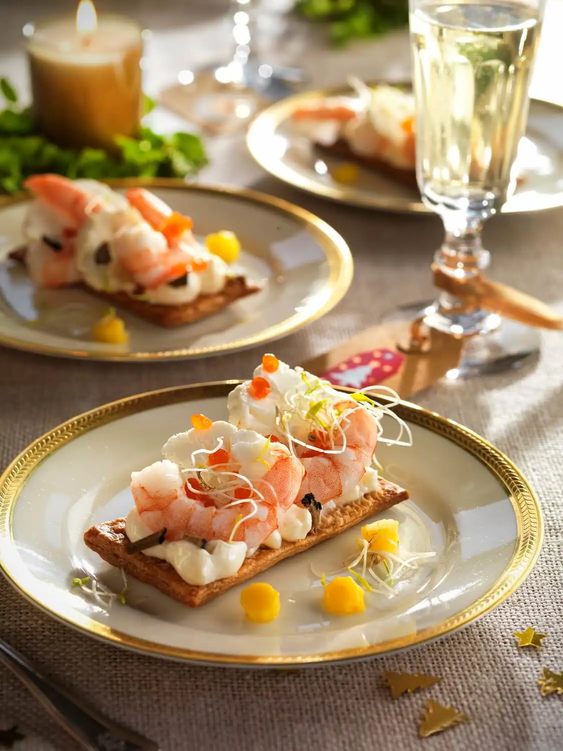 5.Recettes de Noël avec de la pâte feuilletée dorée et des crevettes