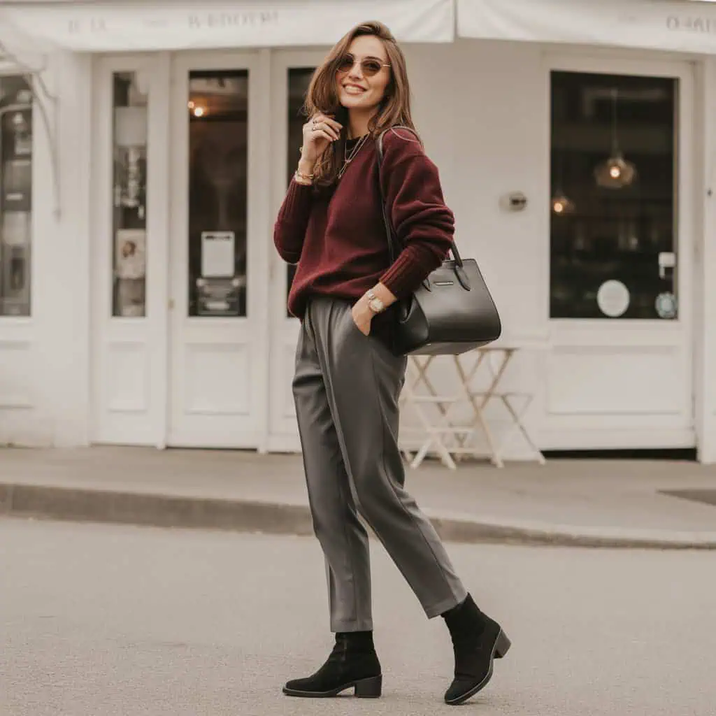 Un look qui respire la sophistication et l’assurance, idéal pour la femme qui privilégie une mode discrète mais percutante.