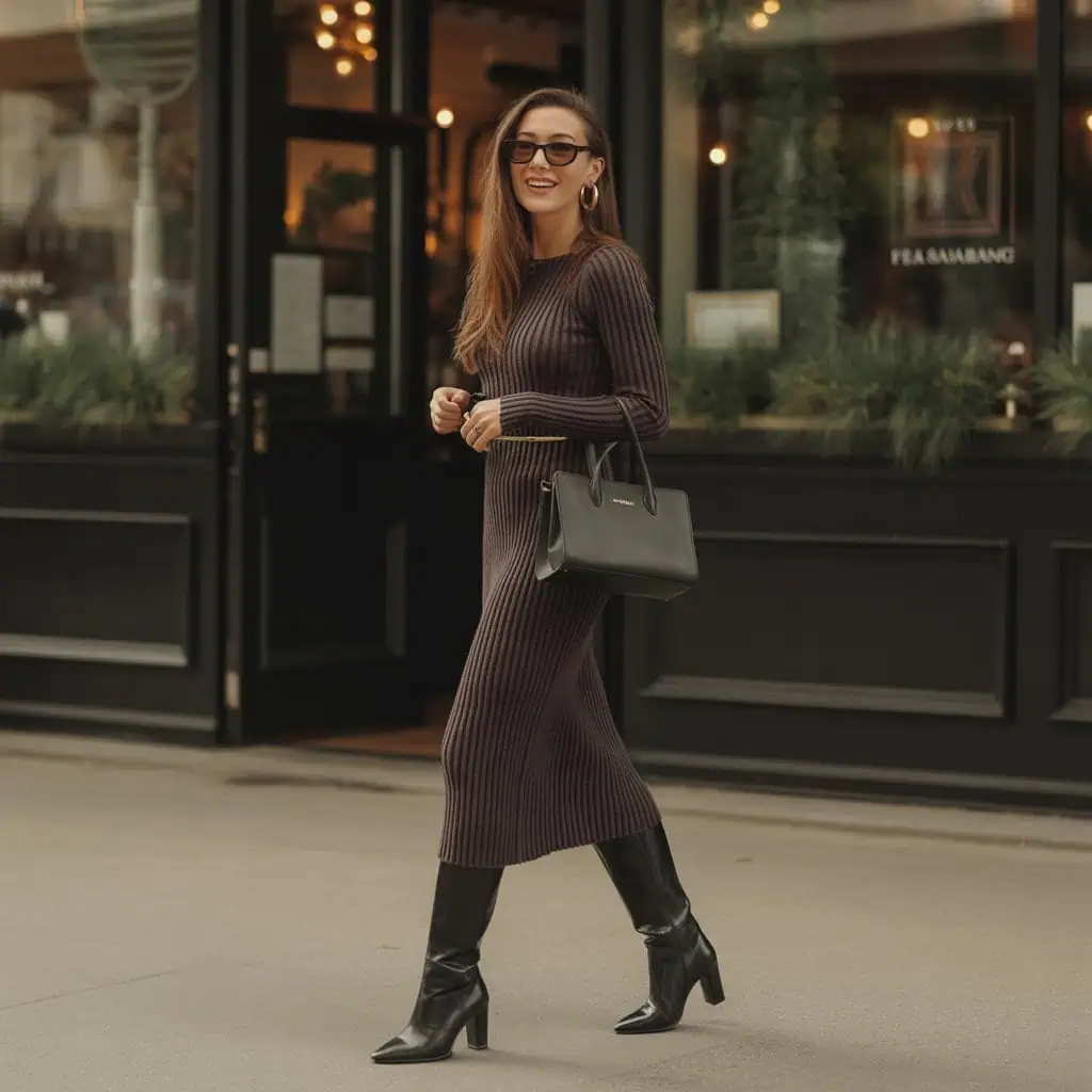 Robe en maille + bottes en cuir