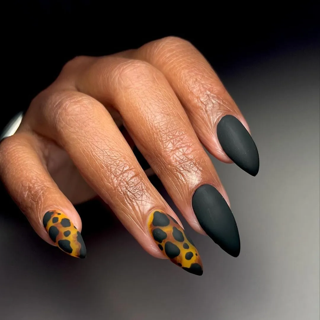 Sublimez votre manucure noire avec un imprimé animalier, qui, en mat, évoque la fourrure hivernale .