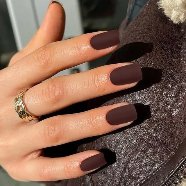 Le brun chocolat riche est l’un des meilleurs choix de nuances pour une manucure mate pour cet hiver 2026.