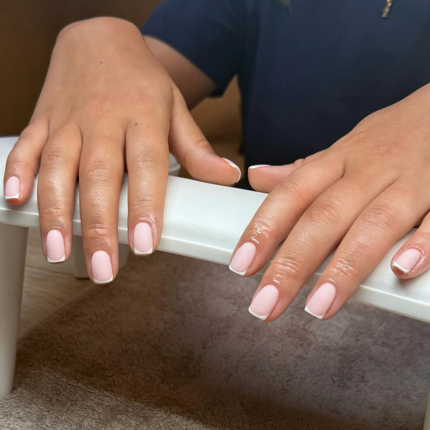 Les ongles rose laiteux sont très tendance ces derniers temps, mais les roses neutres se marient tout aussi bien avec les finis mats. Si vous débutez avec la manucure mate, c’est le look idéal et sans risque à adopter.