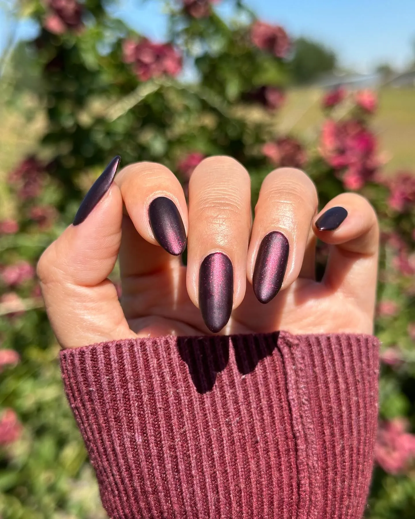 Une version mate et maussade de la tendance des ongles grillés qui nous obsède depuis des semaines ? Oui, s’il vous plaît. Ce look capte la lumière et ajoute de la dimension, tout en conservant un fini doux à ne pas manquer pour cet hiver 2026.
