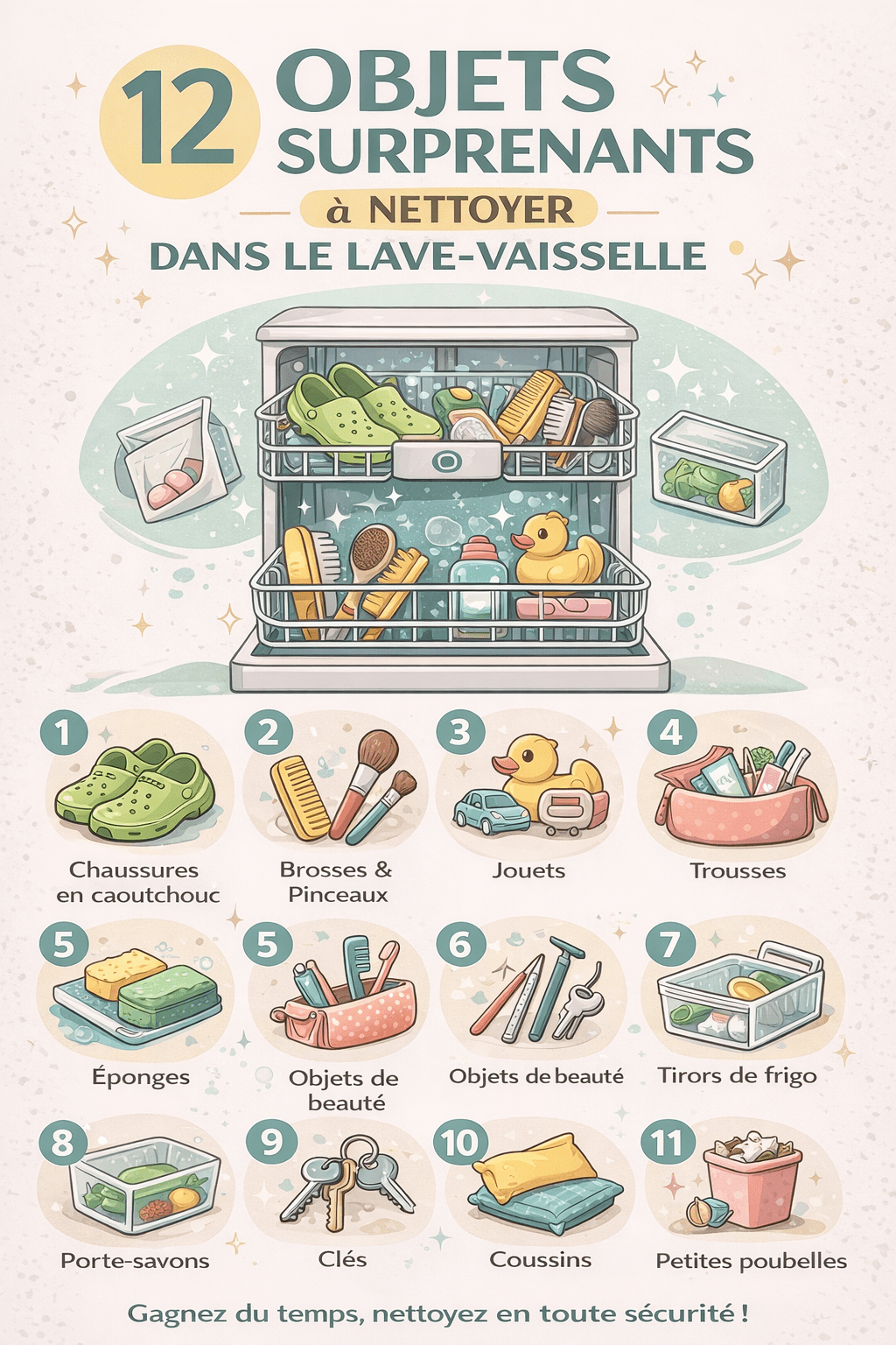 Dans cet article, découvre 12 objets étonnants que tu peux laver au lave-vaisselle, accompagnés de conseils simples pour éviter les erreurs et préserver ton appareil.