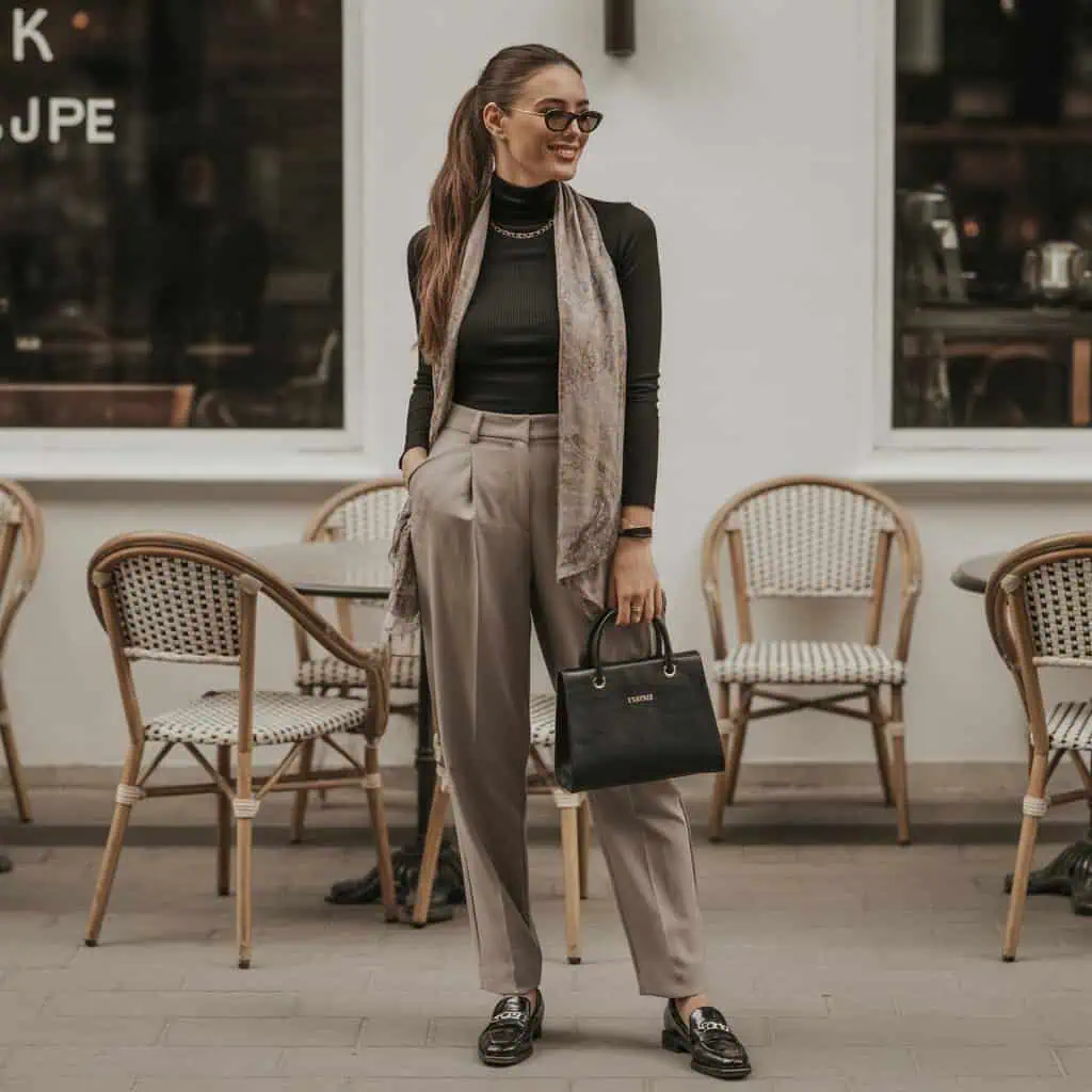 Rentrer ses hauts, surtout les modèles ajustés comme un col roulé gris, apporte instantanément une touche d’élégance à n’importe quelle tenue.