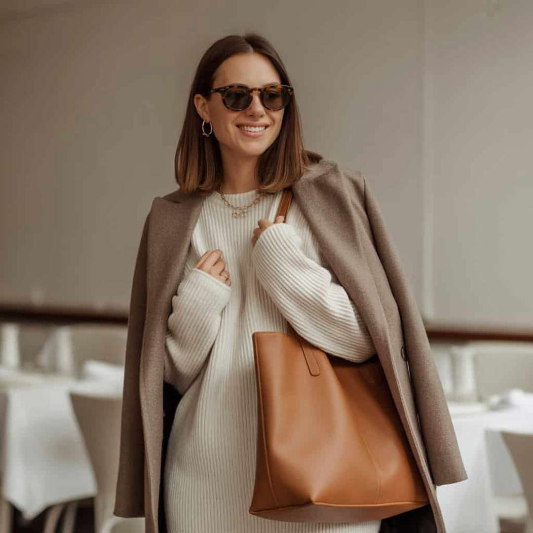 Associer un manteau en laine à une robe pull et un sac en cuir crée un look à la fois luxueux, pratique et ultra stylé. Le manteau en laine est un incontournable intemporel : il apporte chaleur et élégance tout en offrant une silhouette affinée qui flatte toutes les morphologies.