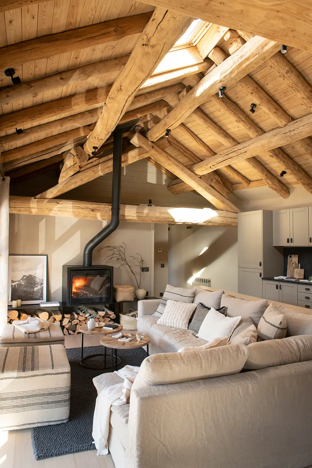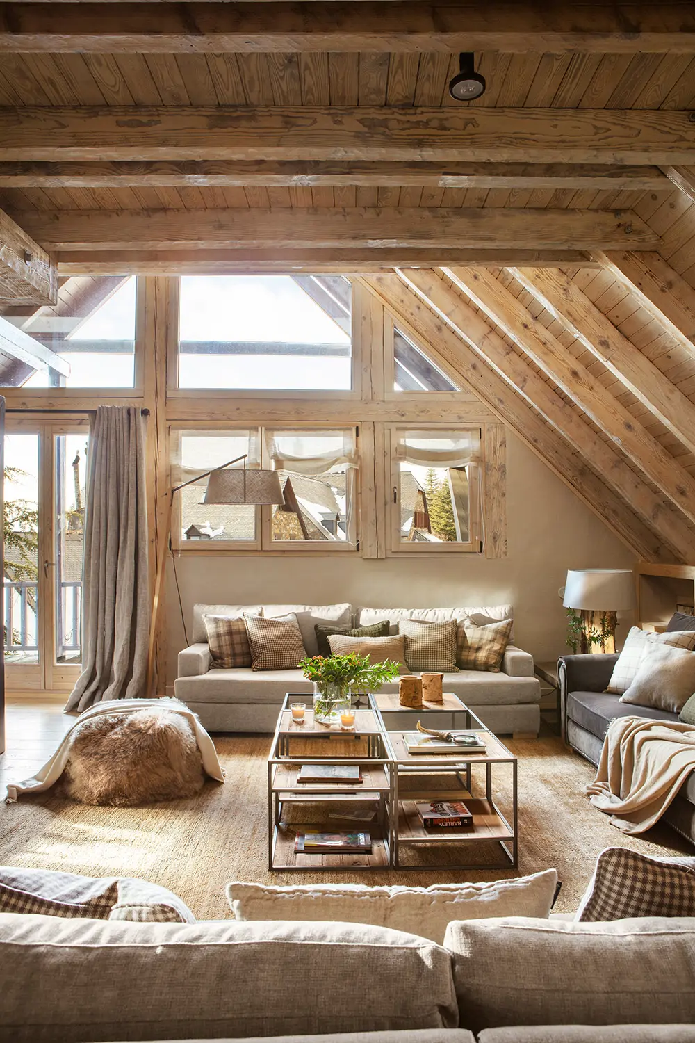 Le bois demeure le matériau phare du style rustique , mais en 2026, les teintes claires et lumineuses seront à l’honneur.