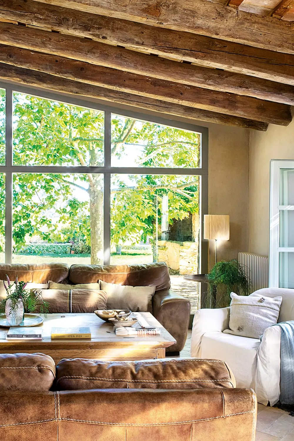 Et n’oubliez pas de moderniser votre salon rustique ! Le lien avec la nature est essentiel, et rien n’y contribue mieux que de grandes fenêtres laissant entrer la lumière et offrant une vue imprenable sur le paysage.