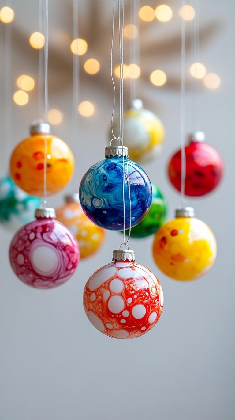 Des tourbillons de couleurs vives sur de simples sphères de verre, et voilà, chacune devient unique. Imaginez un tie-dye original mêlé à une ambiance festive et sophistiquée.