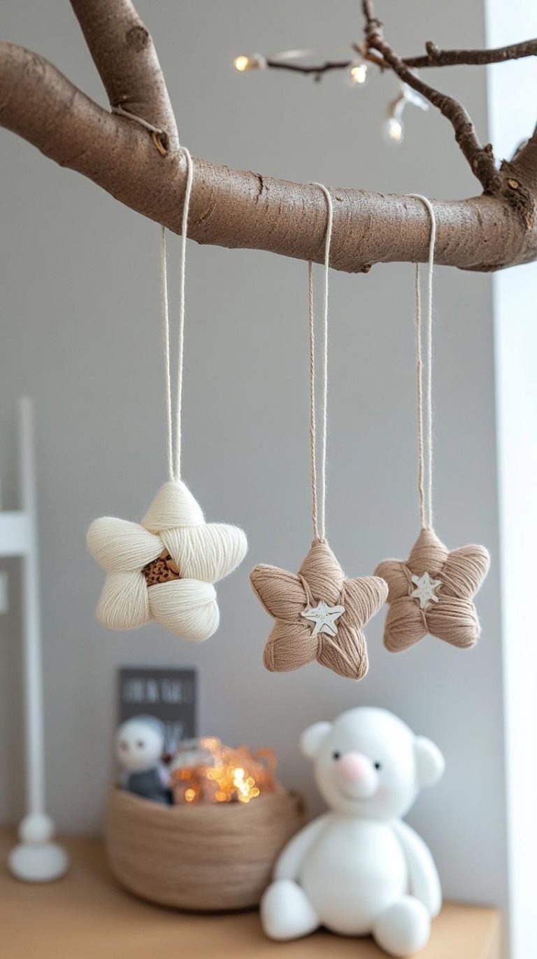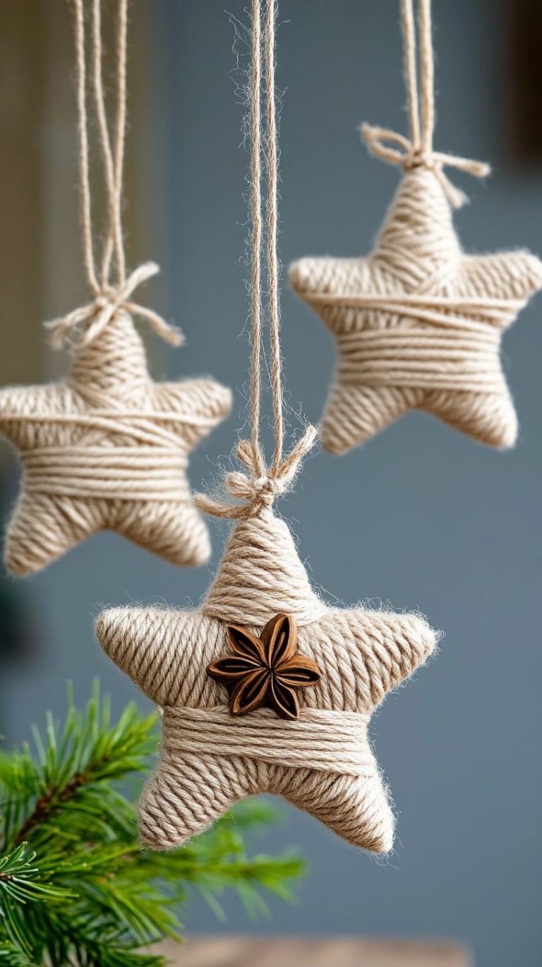 Envie de créer des décorations élégantes et discrètes pour les fêtes ? Les étoiles enroulées de laine aux tons neutres allient simplicité et charme. La laine beige crée une ambiance chaleureuse.