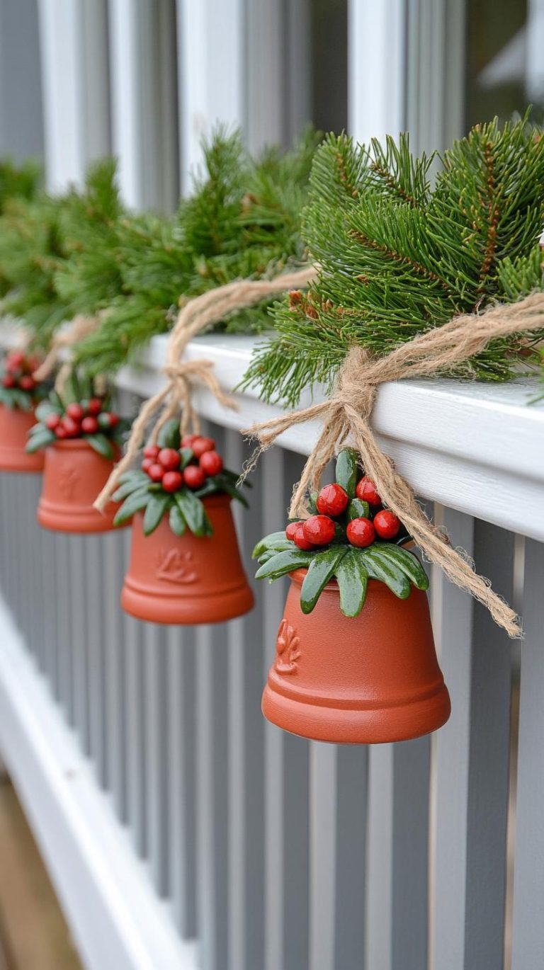 Imaginez la joie festive de confectionner votre propre guirlande de clochettes. Utilisez de petits pots en terre cuite comme clochettes. Peignez-les avec des couleurs chaudes et festives.