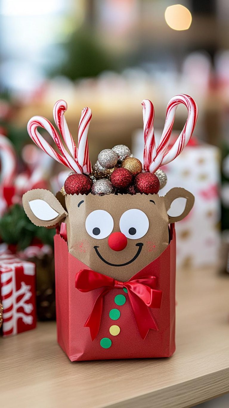 Imaginez : fabriquer votre propre renne avec un simple sac en papier ! C’est ingénieux ! Ajoutez des bois en sucre d’orge pour une touche festive. Ils sont faciles à réaliser et économiques.