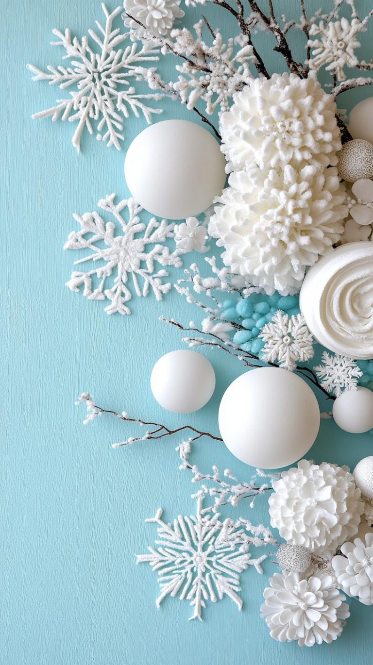 Disposez-les sur un fond circulaire bleu et ajoutez des éclaboussures de peinture blanche pour imiter la neige. C’est artistique et gratifiant. En quelques minutes, vous voilà Picasso en hiver !