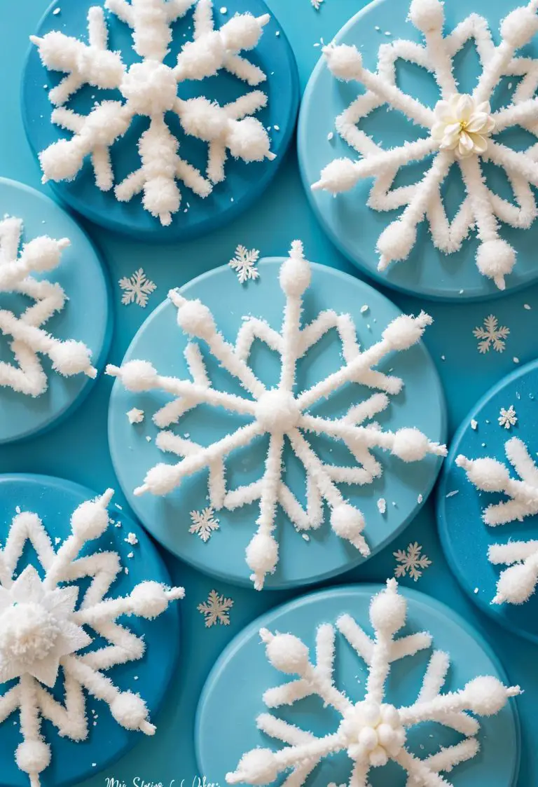 - Flocons de neige en coton-tige peints en blanc sur fond circulaire bleu – 1