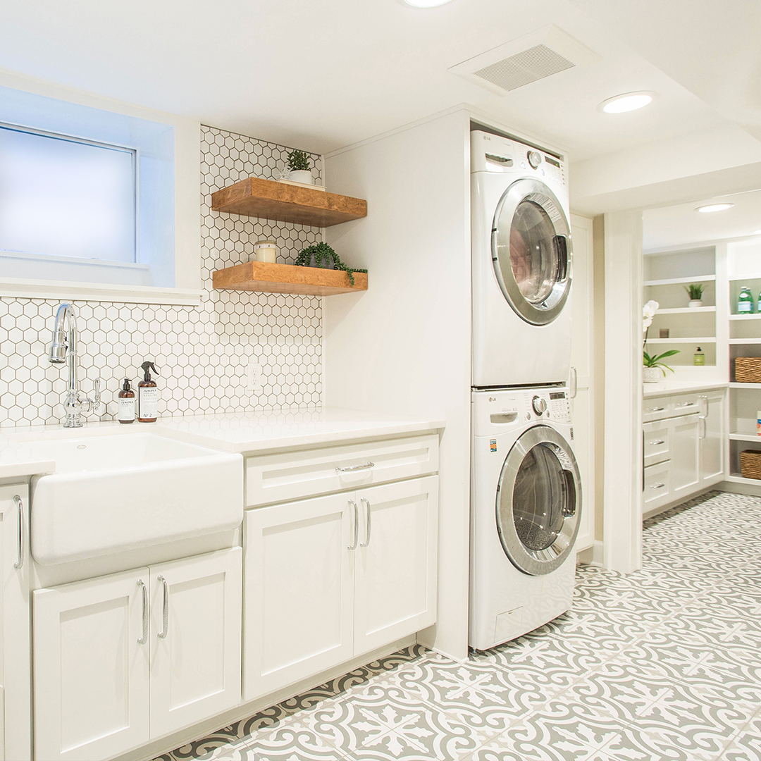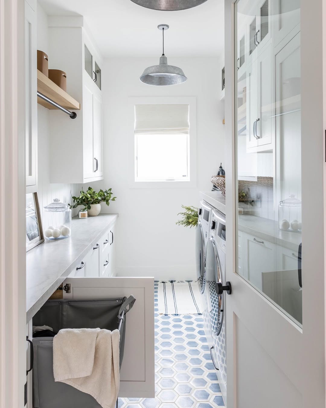 Les carreaux hexagonaux donne à cet buanderie un effet buanderie hyper mignonne