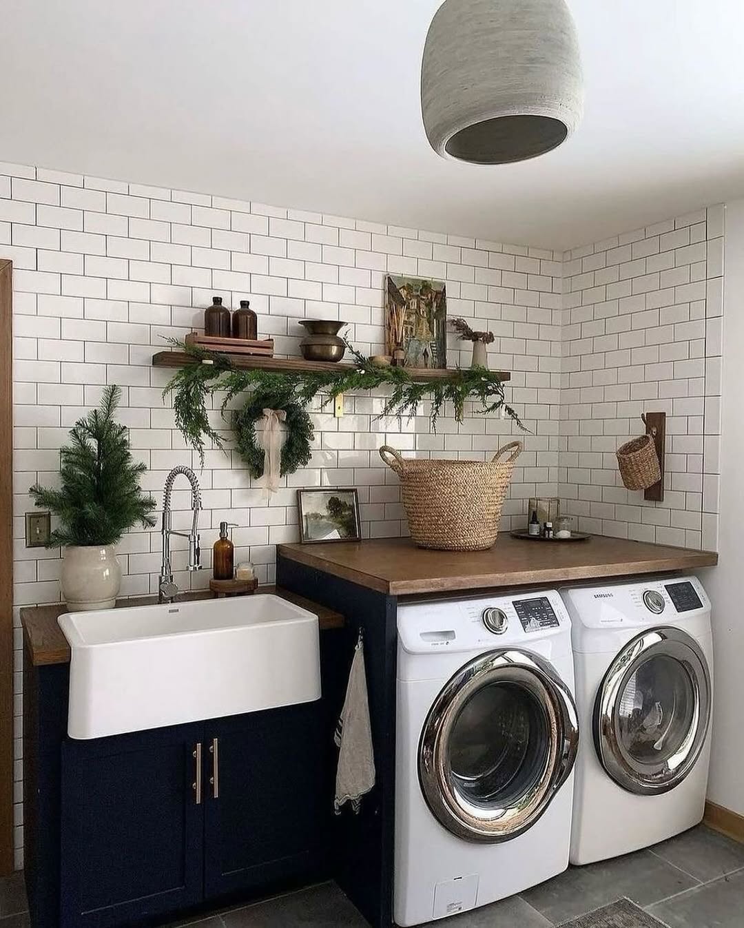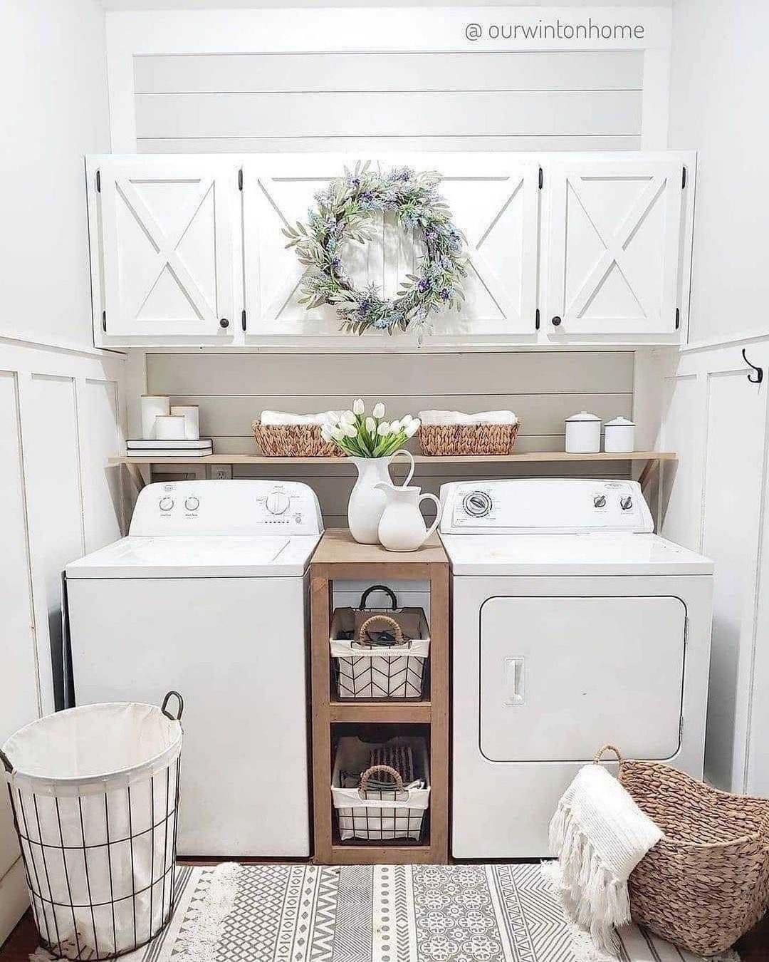 Ce charmant aménagement de @farmhouseismystyle prouve qu’une buanderie peut aussi être un véritable cocon. Dans un tout petit espace, nous avons cette sensation d’être dans un cocon.