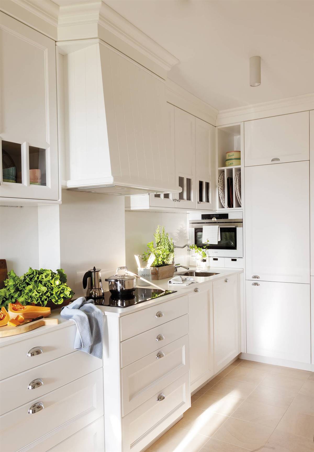 Même la lumière naturelle ! Organisée en deux façades, elle offre plus d’espace de rangement, et peinte en blanc, comme les murs, lui confère légèreté et se fond discrètement dans le décor.