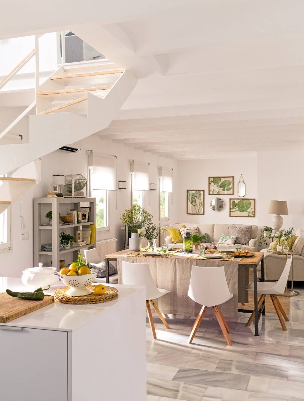 Lorsque Tamila et sa famille ont trouvé cet appartement barcelonais, il était dans son état d’origine. C’était un avantage car ils ont pu le transformer entièrement à leur goût : un espace de vie ouvert où le salon, la salle à manger et la cuisine se partagent l’espace.