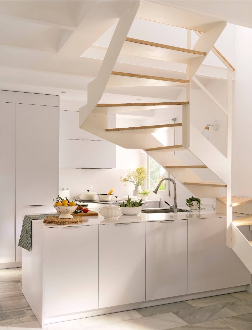 Une mini cuisine sous l’escalier dans cet appartement