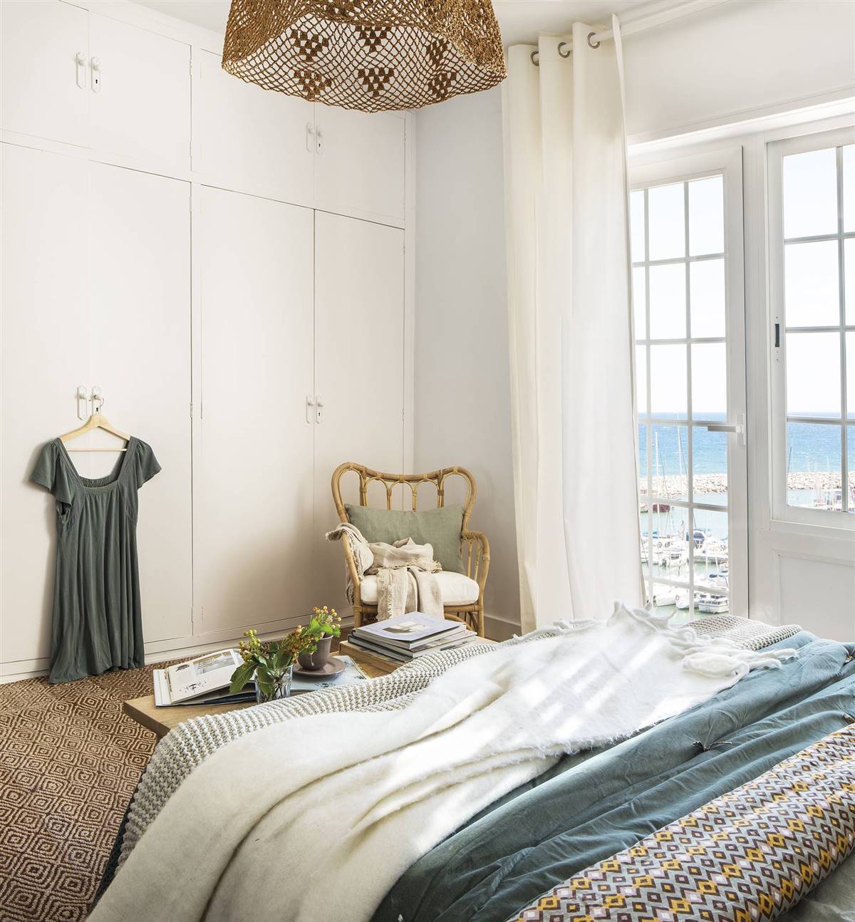 Il s’agit d’une résidence d’été, même si elle est souvent fréquentée toute l’année. C’est pourquoi le salon ne pouvait se passer d’une cheminée, et la chambre principale arbore un soubassement blanc qui illumine l’espace et met en valeur son extérieur luxueux, avec vue sur la mer.