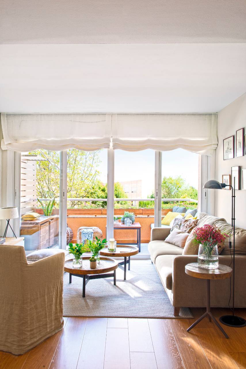 Elle a également réservé le salon à côté de la fenêtre de la terrasse. Ainsi, ouvert, il s’étend vers l’extérieur comme deux salons.