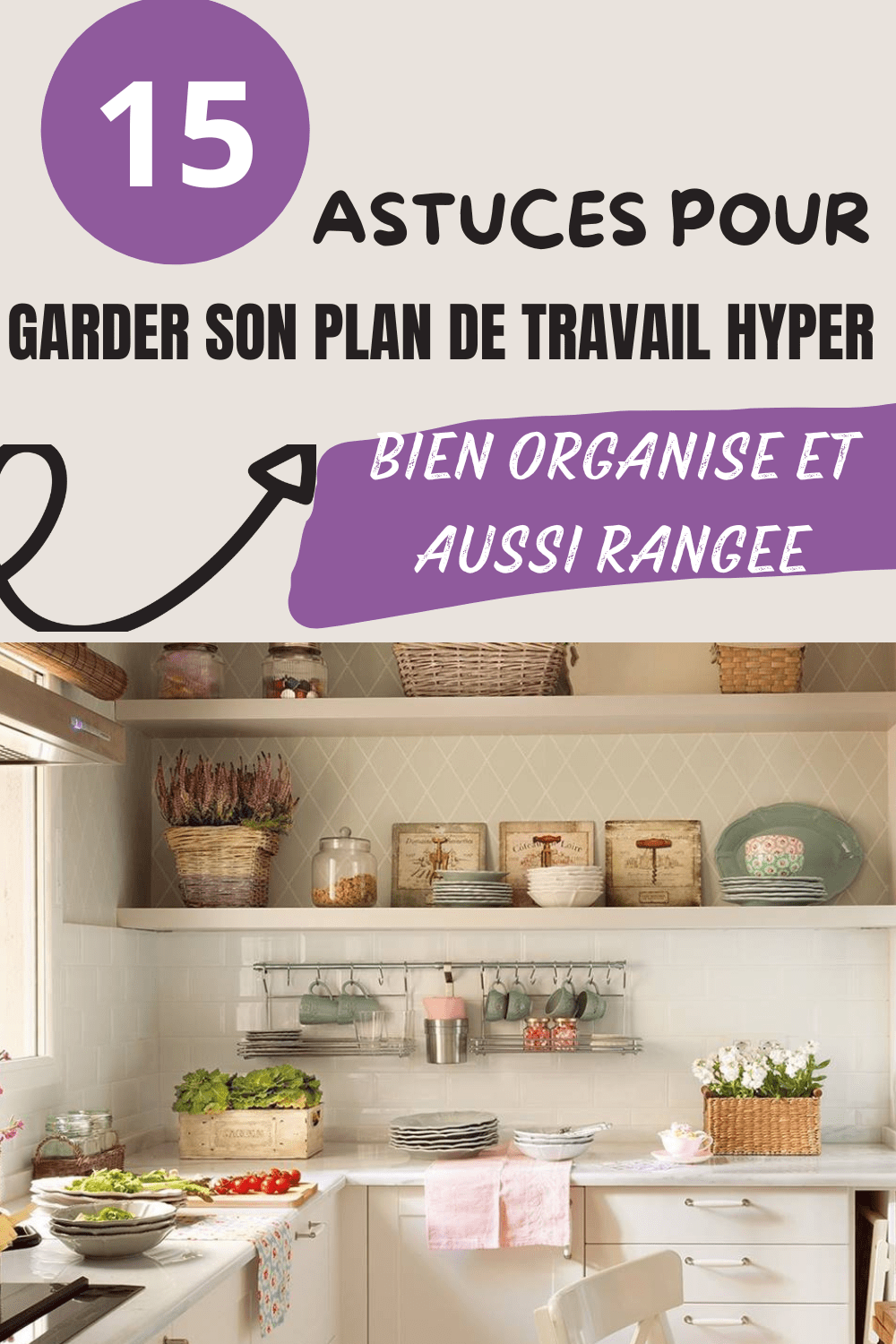 Cette façon d’organiser les objets est également importante. Donc, si vous placez des petits conteneurs sur le comptoir, assurez-vous de les placer soigneusement en ligne et non de manière inégale. Au final, tous ces petits détails s’additionnent pour avoir une cuisine qui parait plus propre et rangée.