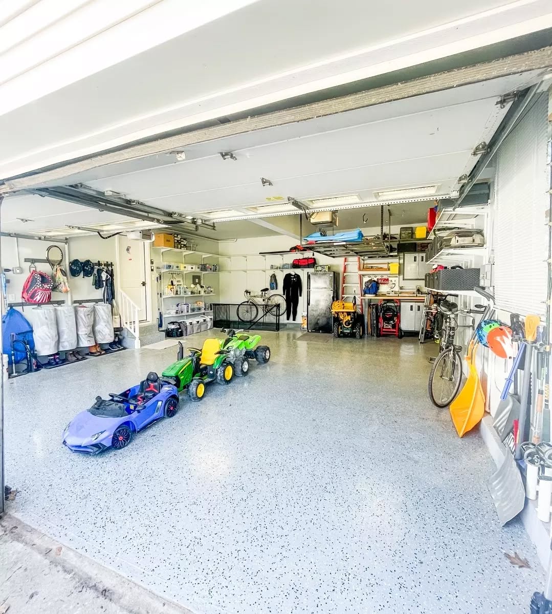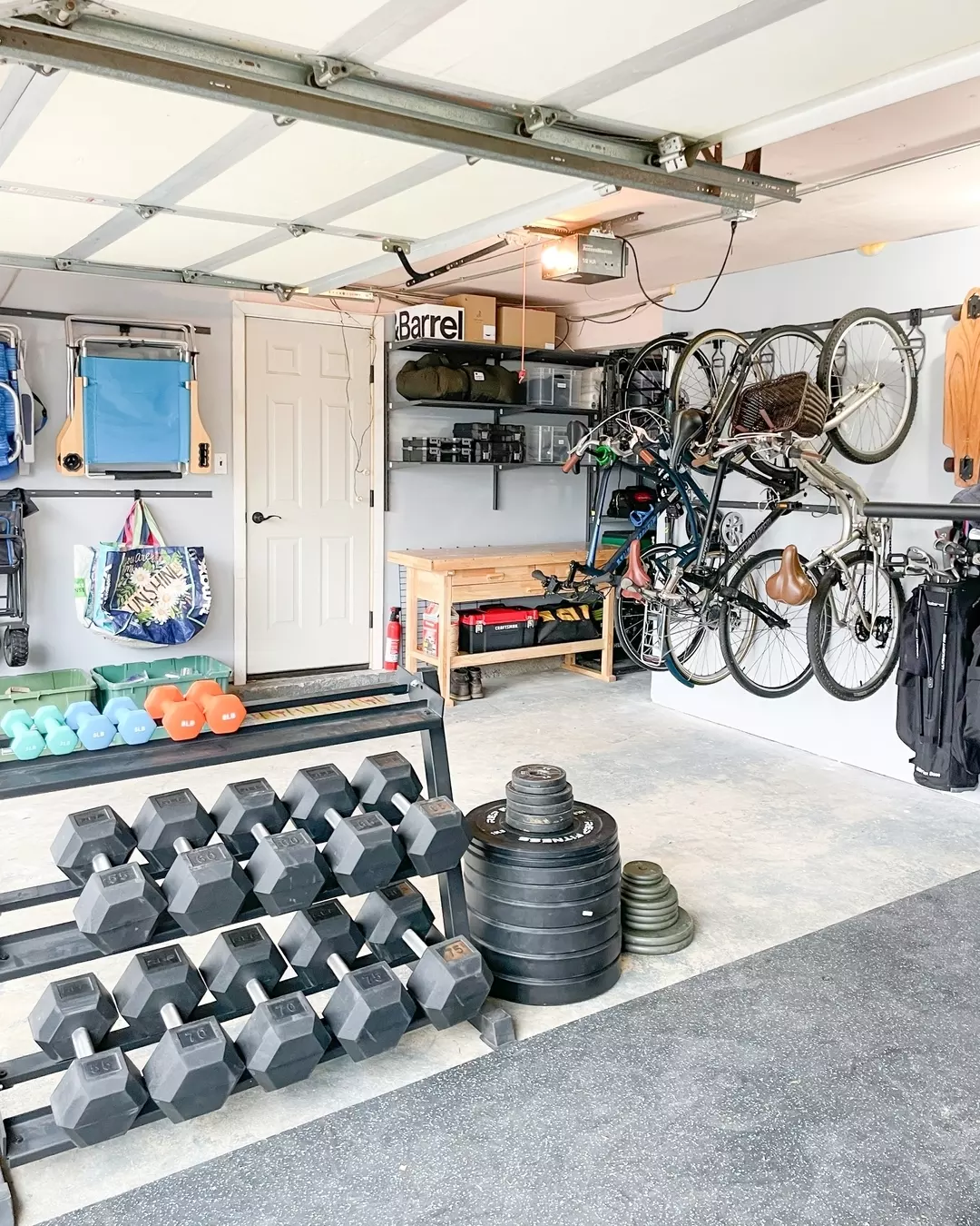 Chaque centimètre carré de ce garage est parfaitement rangé : des haltères alignées comme des bonbons aux chaises de plage parfaitement placées et au matériel de surf prêt pour une escapade de week-end.