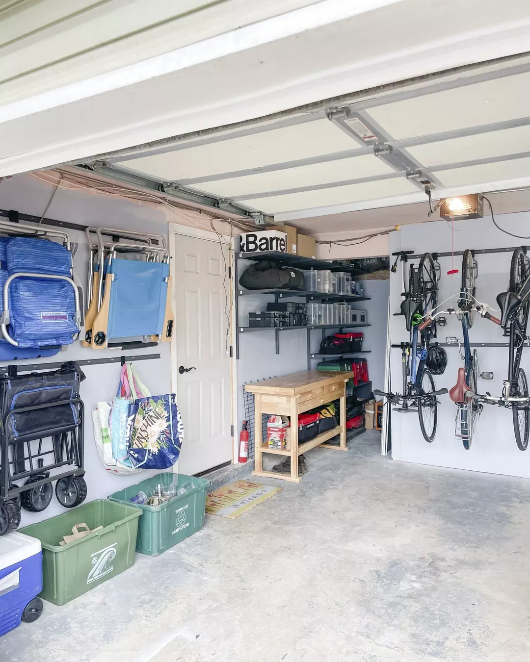 Mais ensuite sont arrivés les étagères métalliques, les bacs suspendus, le flottement aérien des sacs de sport parfaitement rangés — et soudain, c’est devenu une leçon magistrale en matière de rangement vertical pour pouvoir tout rangé dans son garage.