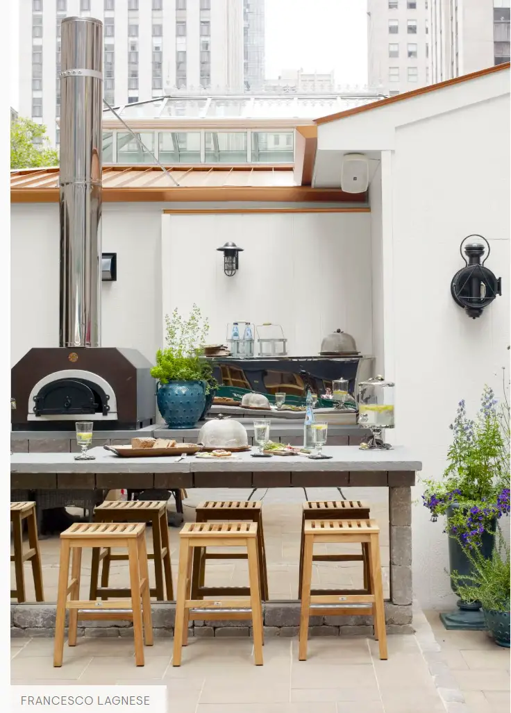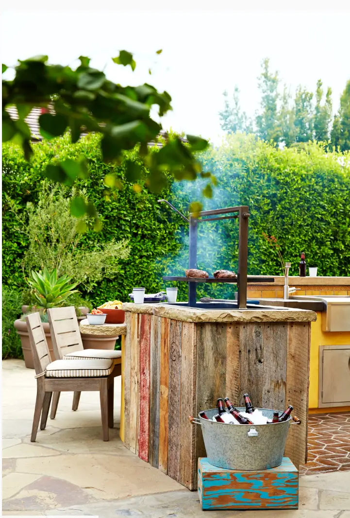 Vous pouvez même aller plus loin et opter pour une méthode de cuisson tout aussi authentique, à l’instar du superbe fumoir en bois et en fer forgé que l’on retrouve dans cet espace conçu par Nathan Turner .