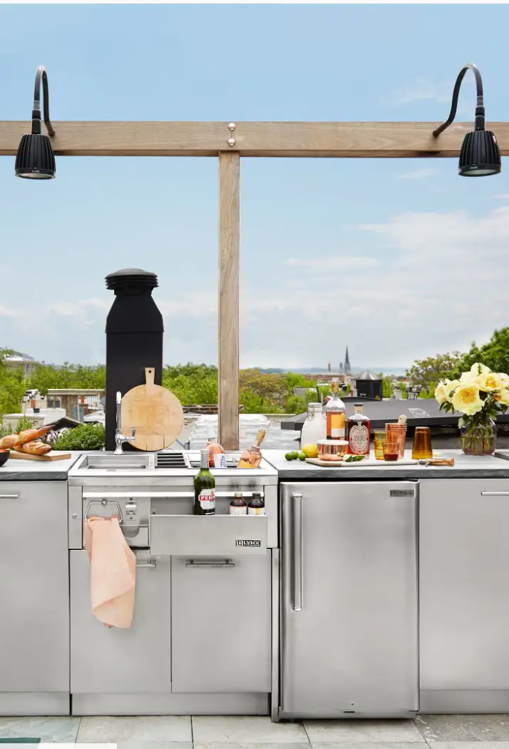 Au lieu de considérer votre cuisine extérieure comme un simple complément à votre espace intérieur, faites-en un espace entièrement autonome en l’équipant de tous les éléments essentiels, tels qu’un barbecue, un réfrigérateur, un évier et un four à pizza.