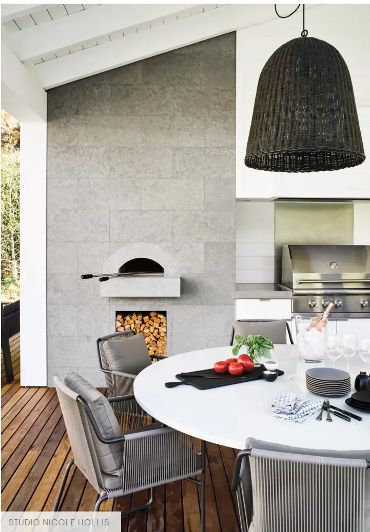 Imaginé par le studio Nicole Hollis, cet espace coche toutes les cases de la cuisine extérieure idéale : esthétique, fonctionnelle et intemporelle.