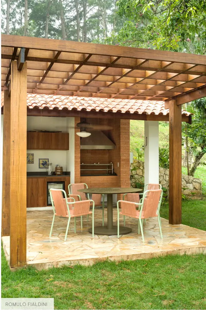 Après tout, vous êtes en plein air ! Et quoi de mieux pour le souligner qu’une cuisine extérieure nichée dans la verdure ?