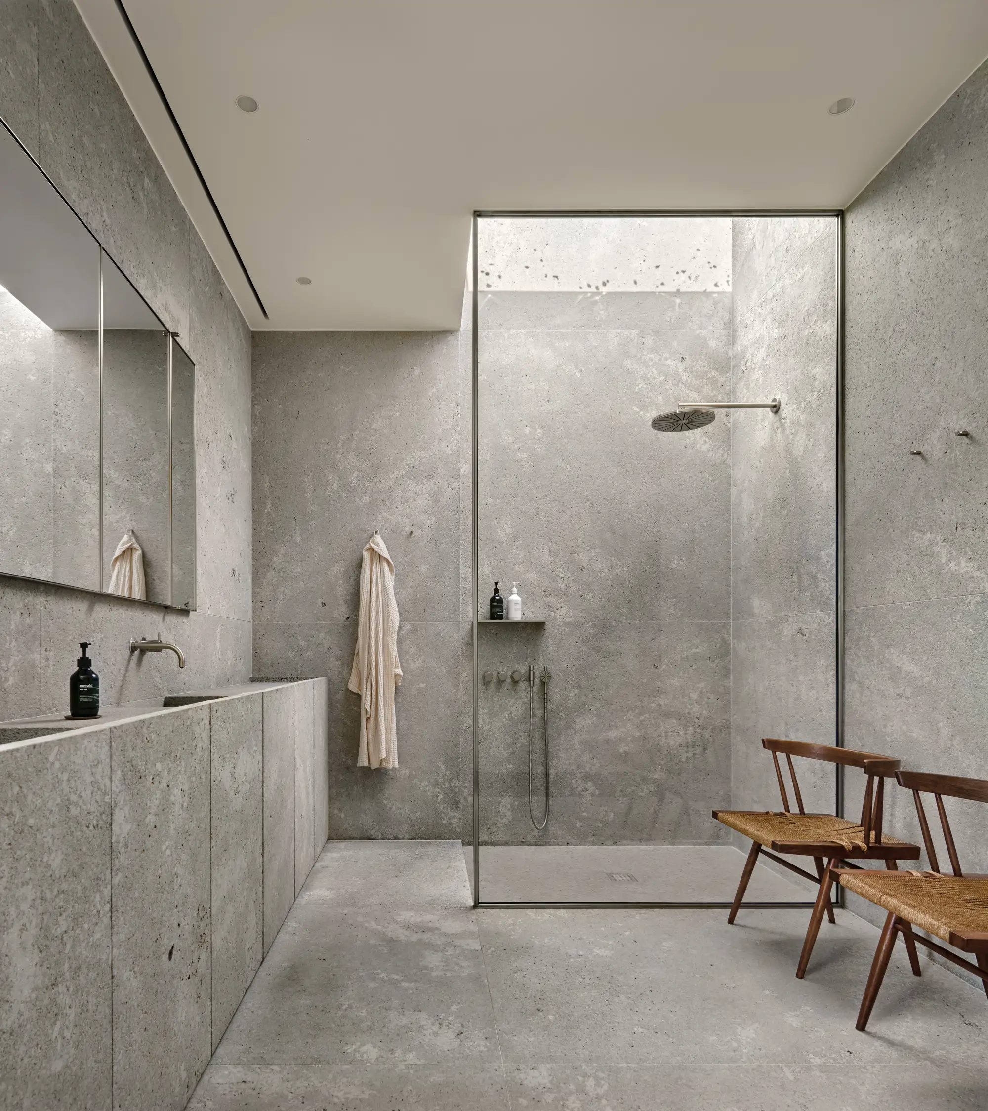 Dans une salle de bain moderne, il n’est pas nécessaire de tout carreler. Les peintures minérales résistent bien à l’humidité et offrent une belle finition mate. De plus, leur aspect sans jointure donne à la salle de bain une apparence plus épurée et contemporaine.