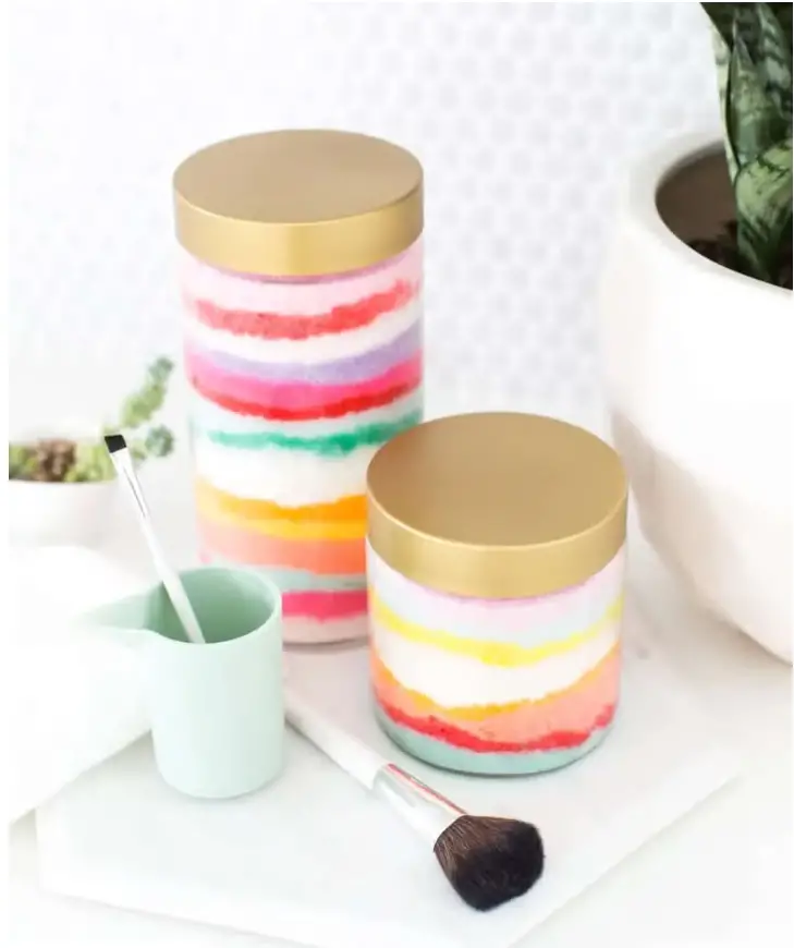 Les accessoires de bain sont toujours un cadeau apprécié pendant les fêtes. Ces pots de gommage au sucre sont aussi agréables à regarder qu’à utiliser dans le bain !