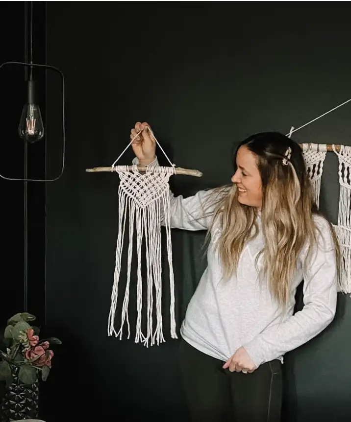Cette décoration murale embellira n’importe quelle pièce de la maison, de la chambre à la cuisine ! Pas de panique si vous débutez en macramé : il vous suffit d’apprendre à faire deux nœuds simples pour obtenir ce joli résultat.