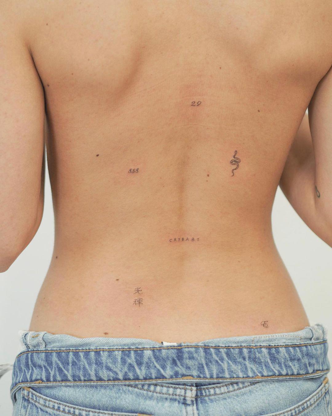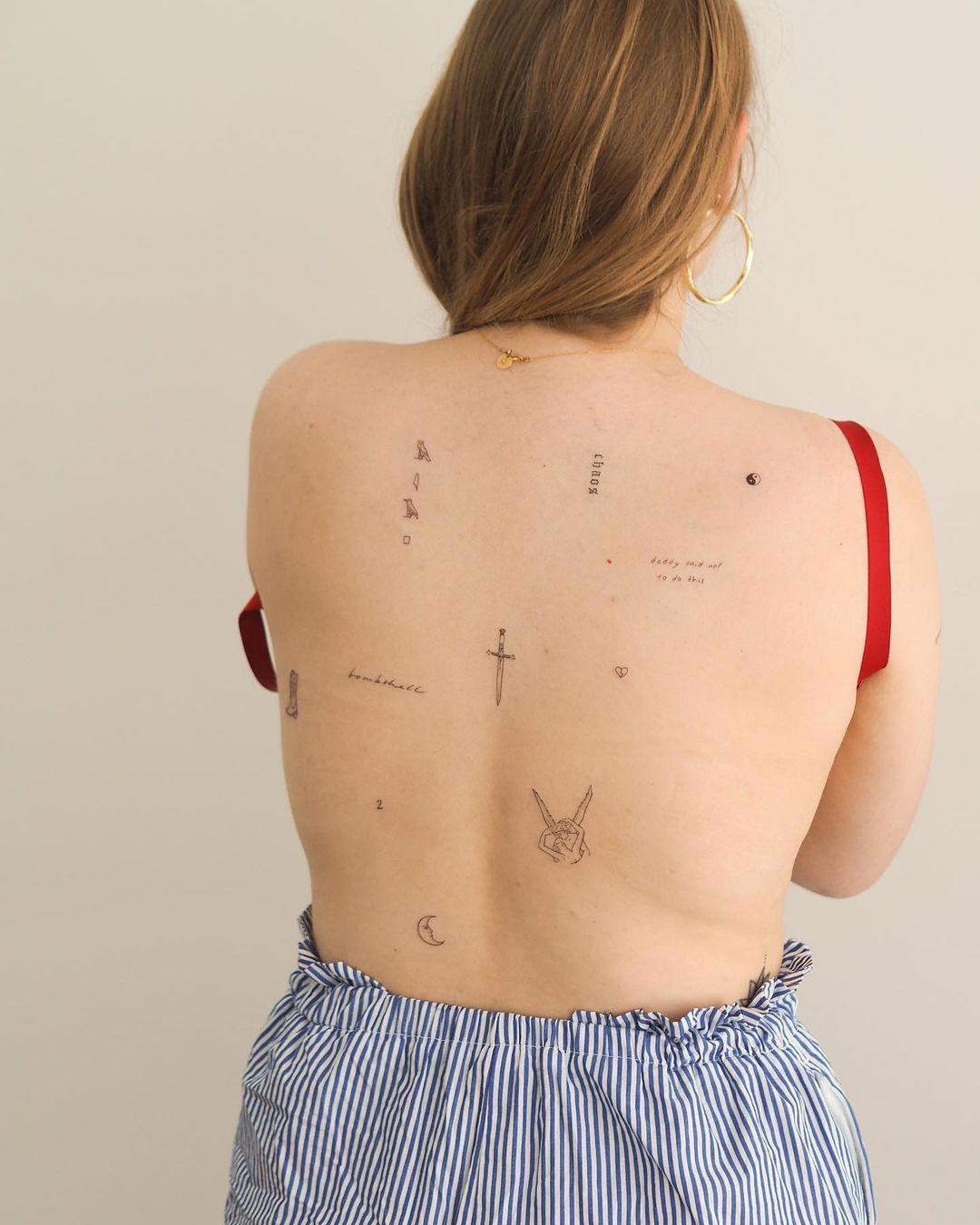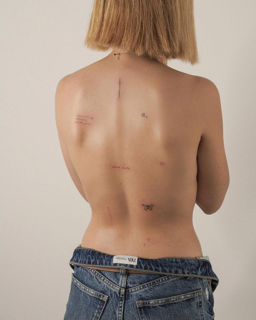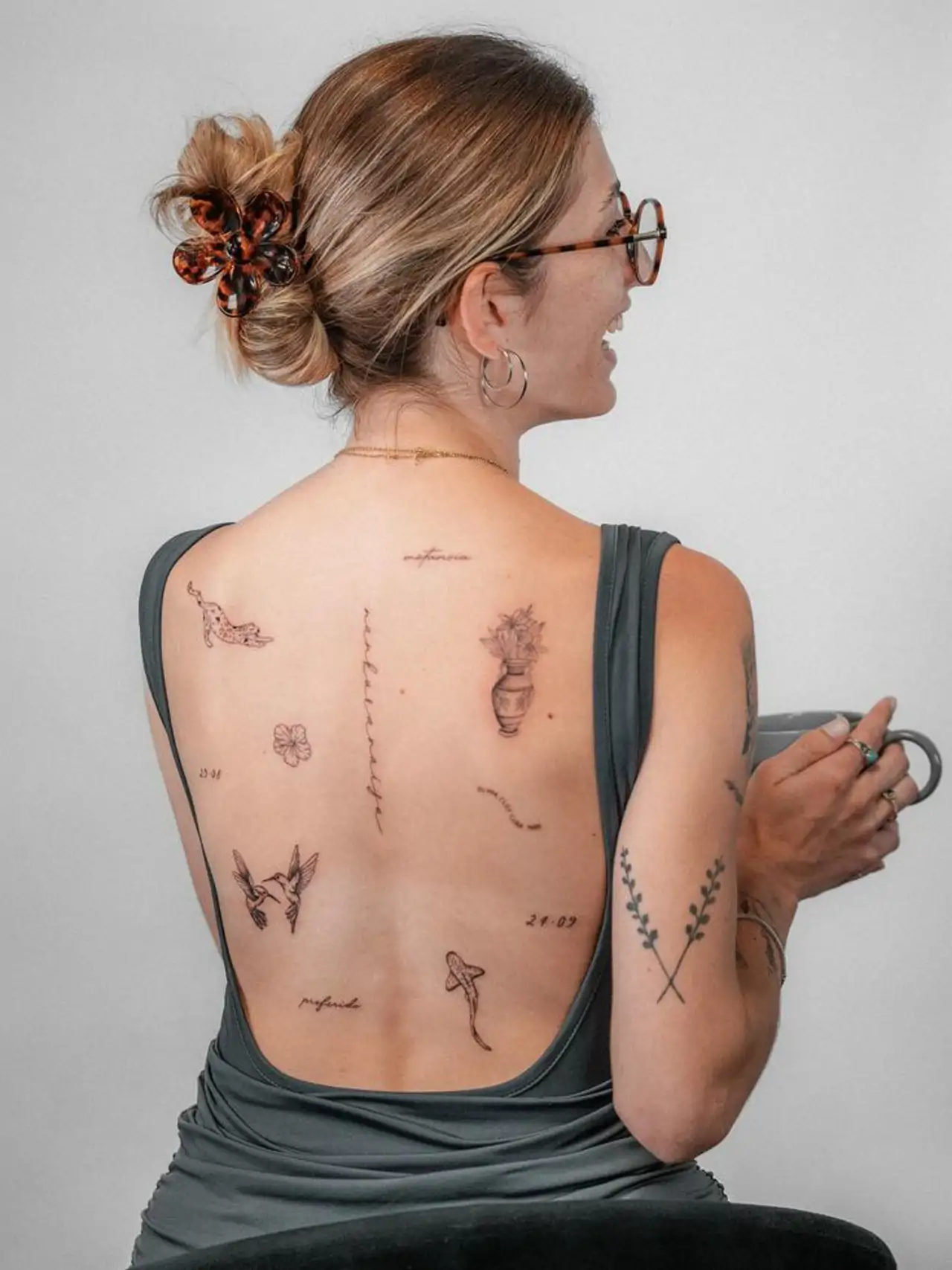 Les dernières tendances imposent de ne pas porter les tatouages les plus délicats dans le dos seuls, mais plutôt en combinaison. Ce sont de petits tatouages caractérisés par des lignes fines et des dimensions réduites, répartis le long du dos de manière subtile et discrète.