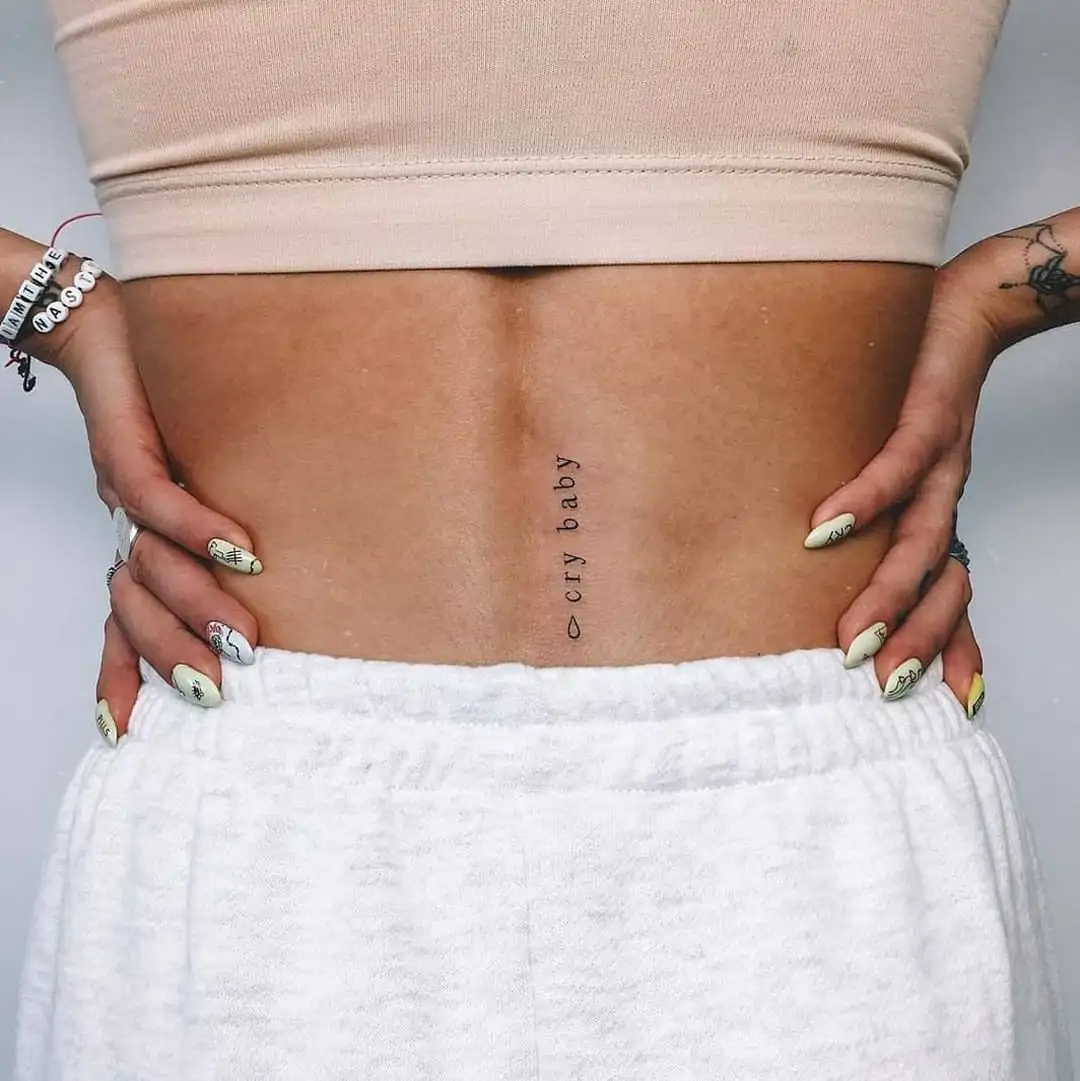 12.Tatouage de mot au centre de la colonne vertébrale.