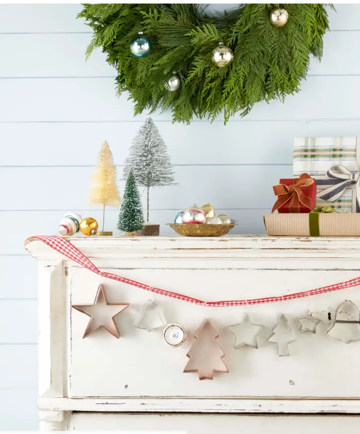 Pour les fabriquer : utilisez de petites boucles de ficelle de boulanger pour suspendre les emporte-pièces le long d’un long ruban.