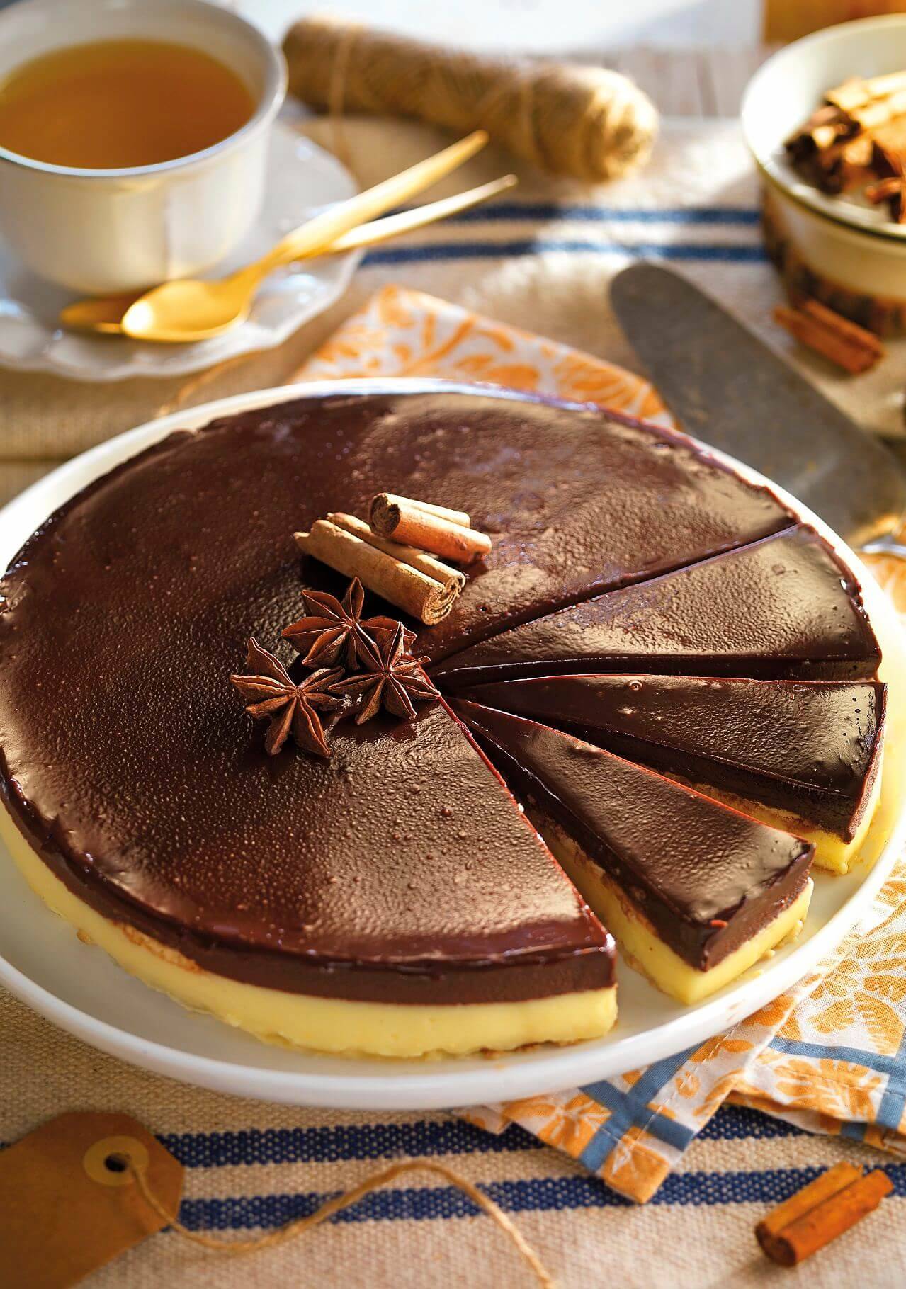 Conservez le gâteau au réfrigérateur jusqu’au lendemain pour qu’il prenne bien, démoulez-le et décorez-le avec des bâtonnets de cannelle et des graines d’anis.