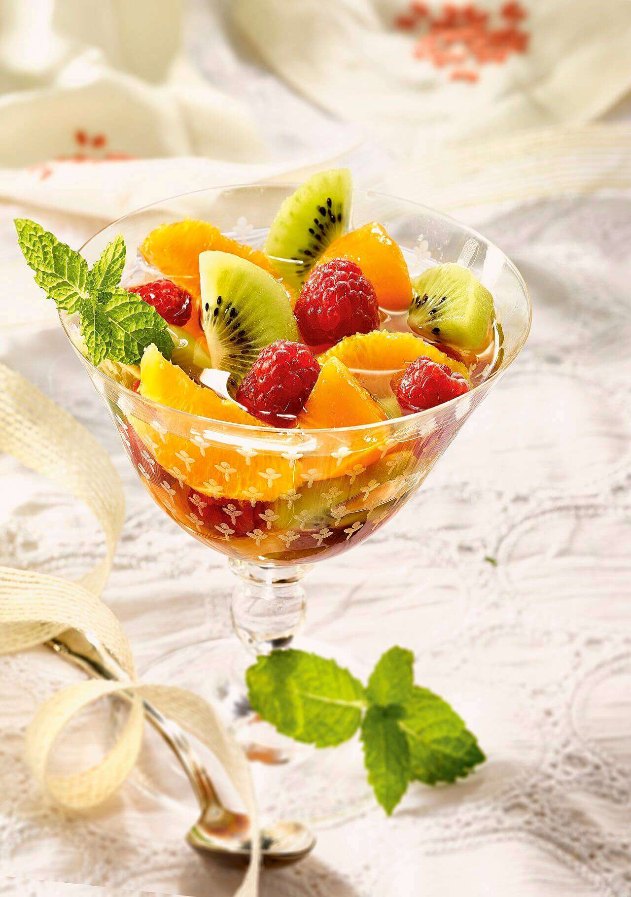 Le secret ? Conservez la salade de fruits bien couverte au réfrigérateur jusqu’au moment de servir. Versez ensuite délicatement le jus des boîtes dessus et mélangez doucement. Répartissez dans des verres et dégustez !