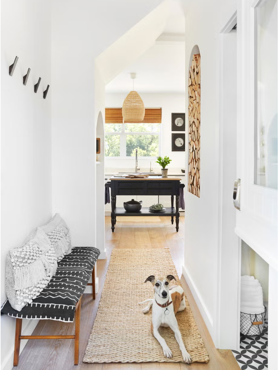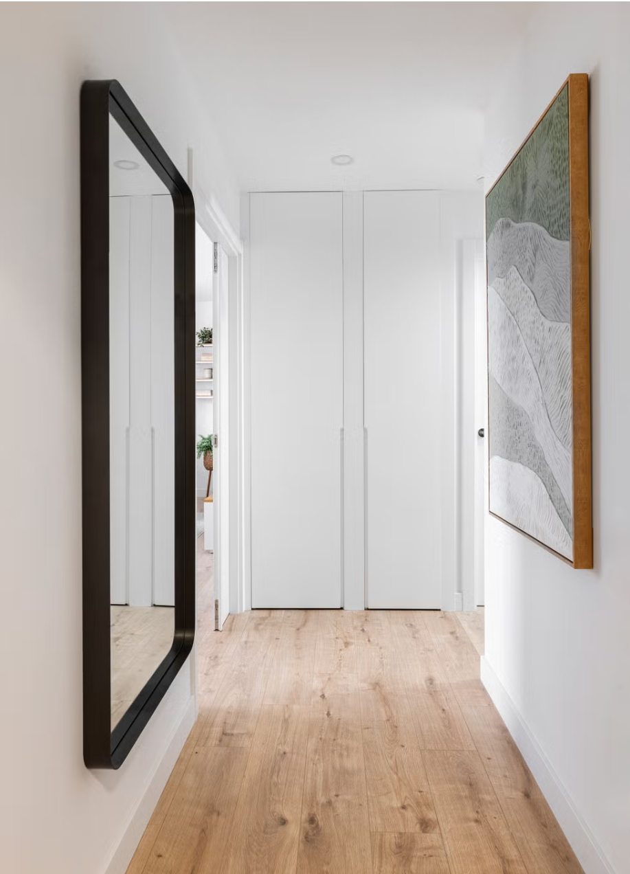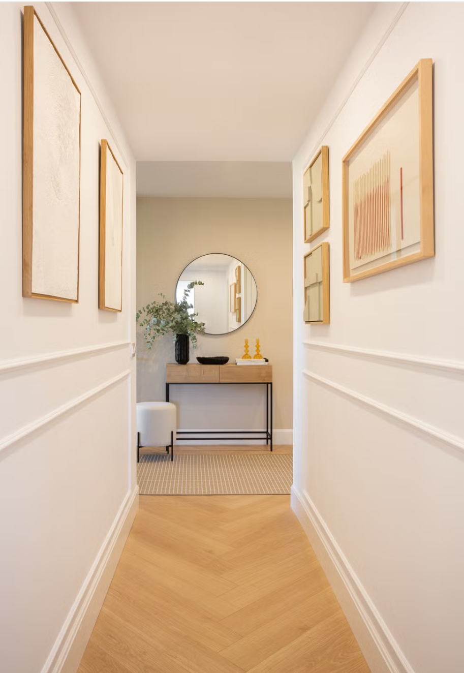 L’une des astuces pour obtenir un couloir blanc et élégant est d’y ajouter des moulures . C’est sans aucun doute une façon élégante de conserver une esthétique entièrement blanche sans donner l’impression d’un couloir négligé.